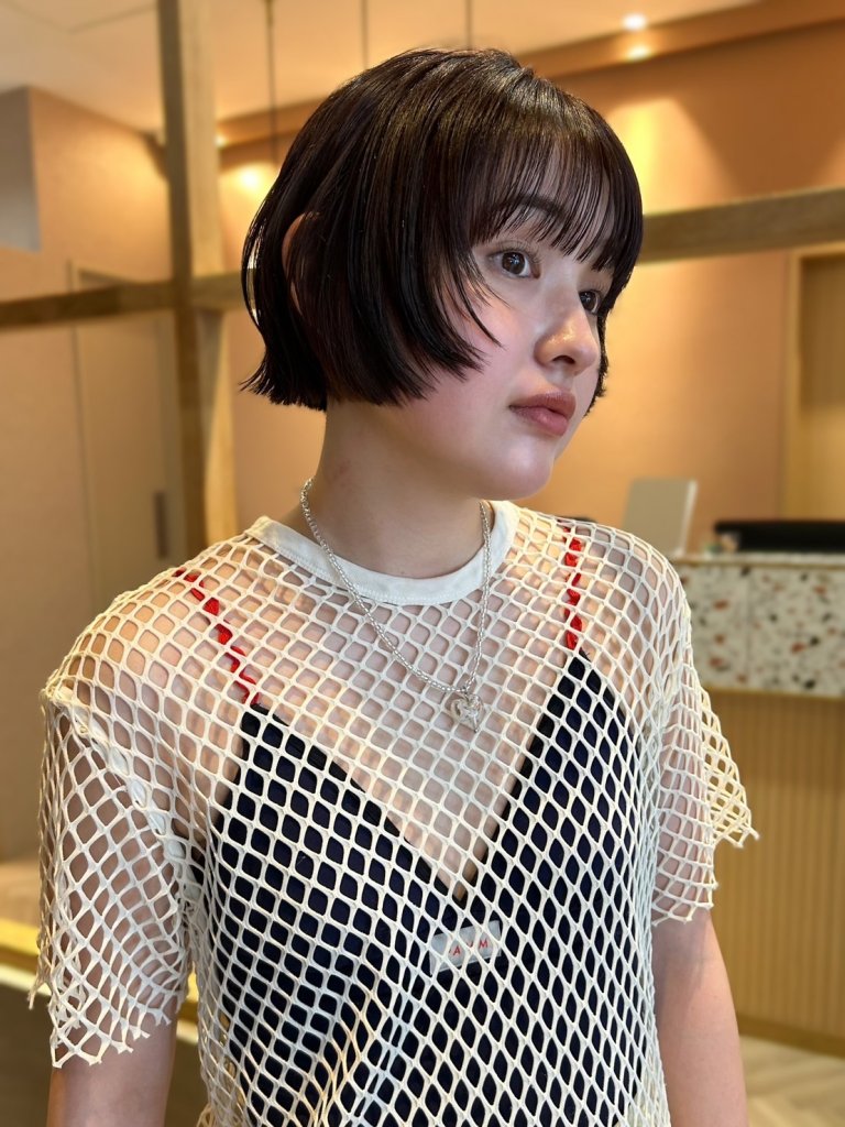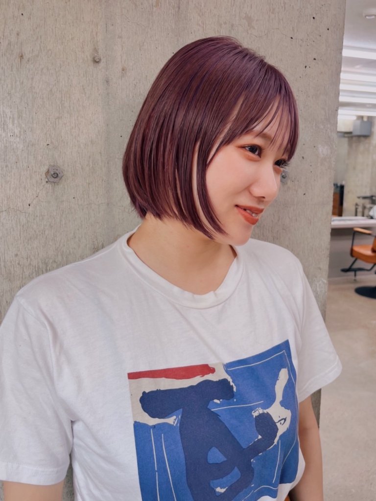 表面にレイヤーが入っているので、重めボブに飽きて来たけどショートにはしたくない方におすすめ。レイヤーを活かして動きをプラス!
