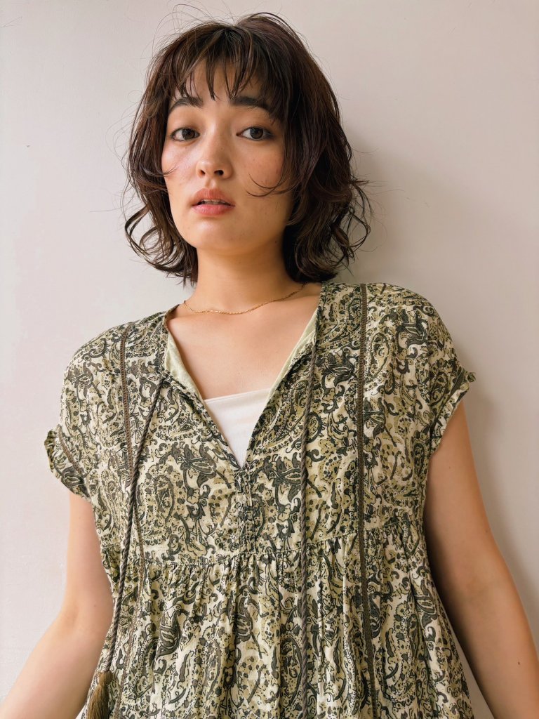 ナチュラルな抜け感と個性を両立させたラフウルフボブスタイル。前髪も無造作な動きとウェットな束感で軽やかにカジュアルですが少しモード感もある仕上がりに◎