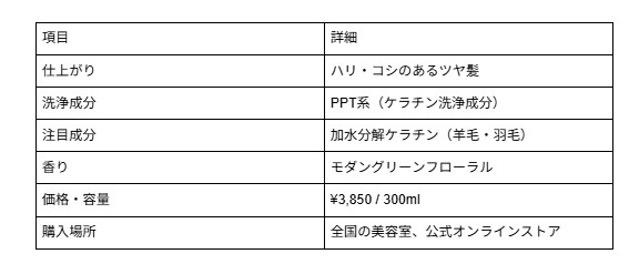 こんな人におすすめ: 髪の主成分「ケラチン」で洗うという発想に惹かれる方。ハリ・コシのあるツヤ髪を目指す方。
