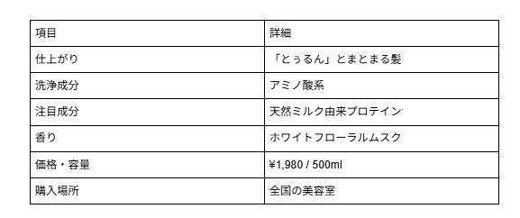 髪の主成分であるタンパク質(ケラチン)を洗浄成分として使用した最高級シャンプー。