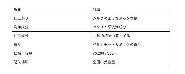 「肌に優しく、保湿力に優れた11種の植物由来のオイルを使用。乾燥しやすい方やカラーの色落ちが気になる方も洗い上がりが優しいのでおすすめです。」