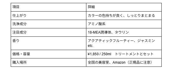 こんな人におすすめ: カラーの色持ちを重視する方。コストパフォーマンスを求める方。