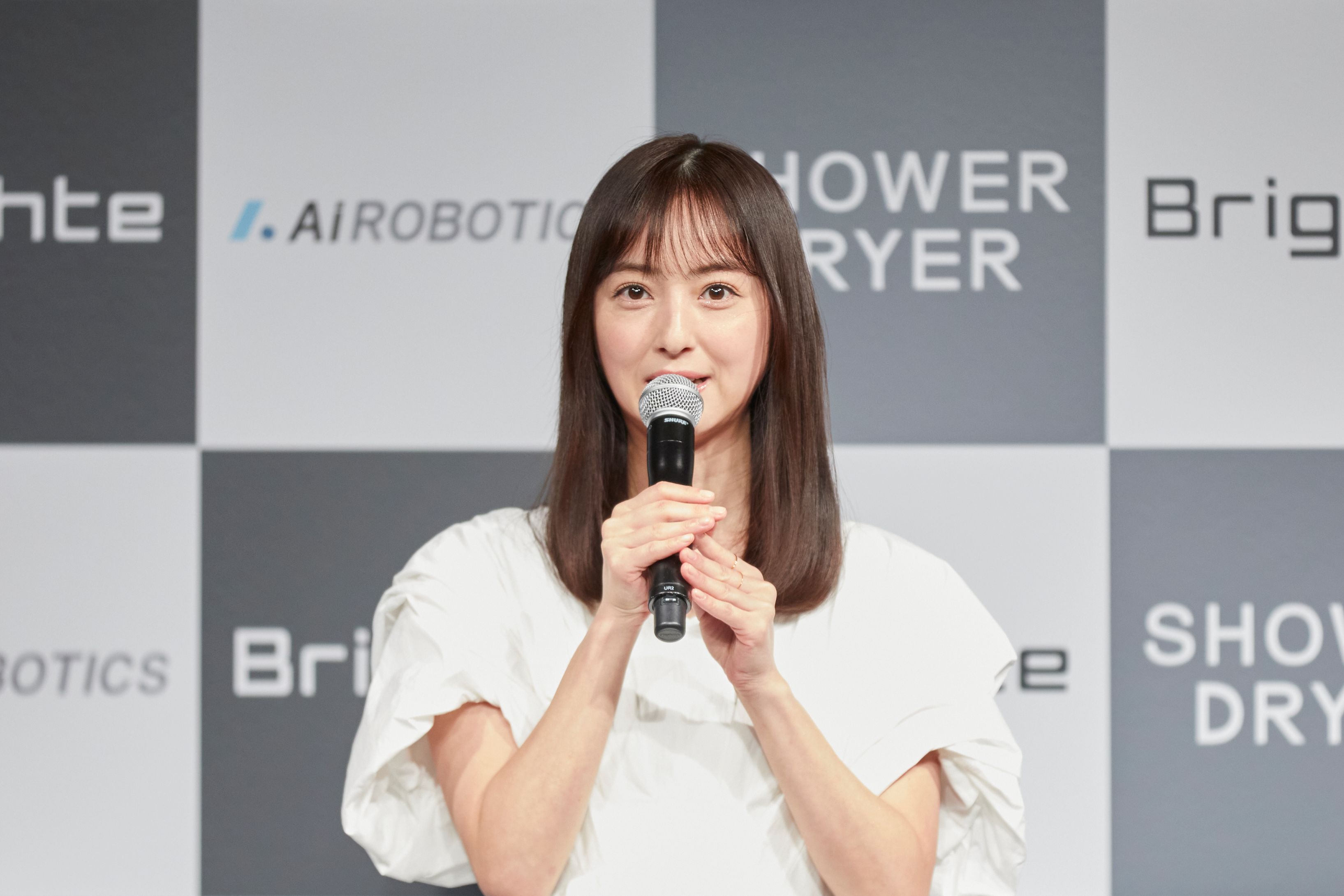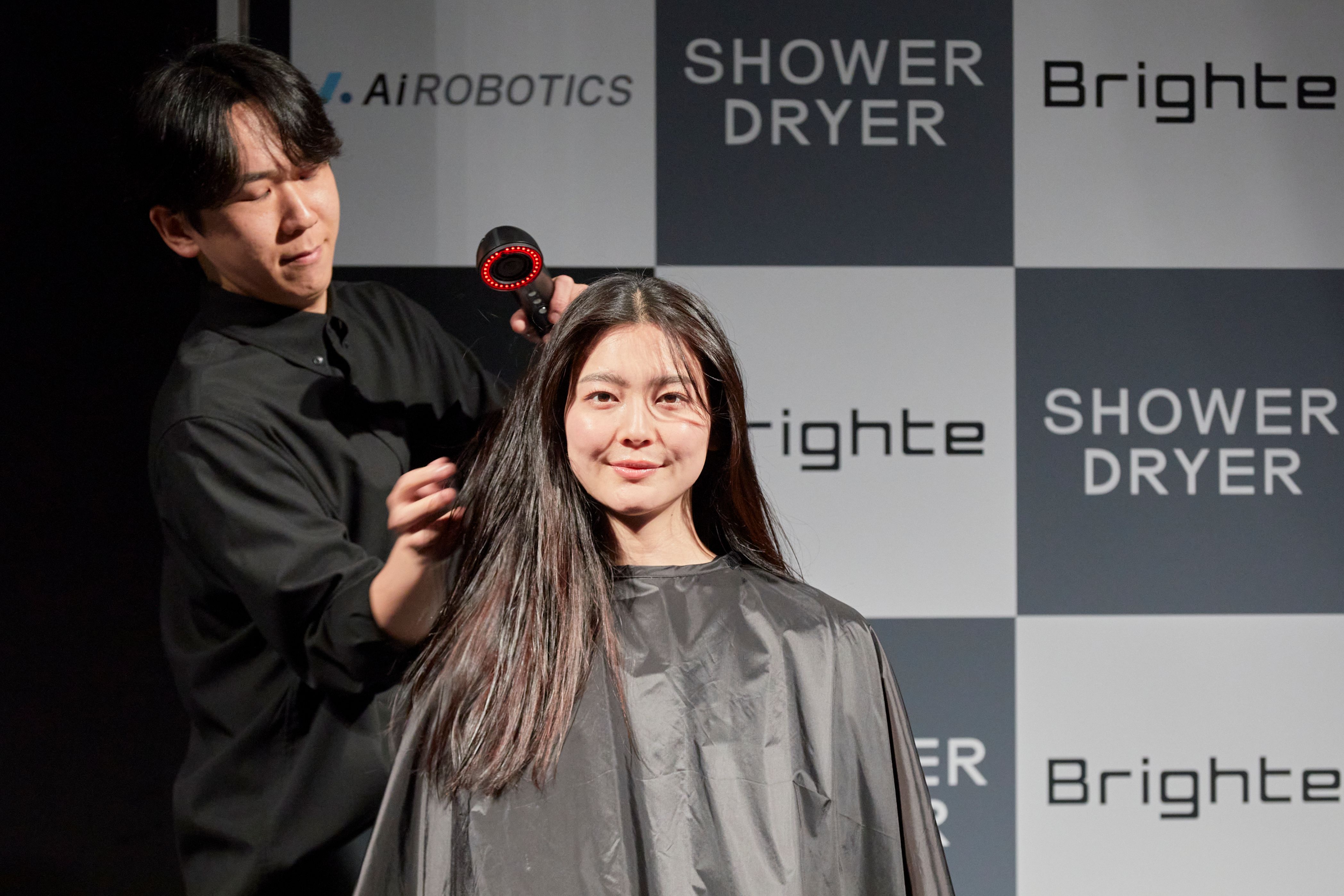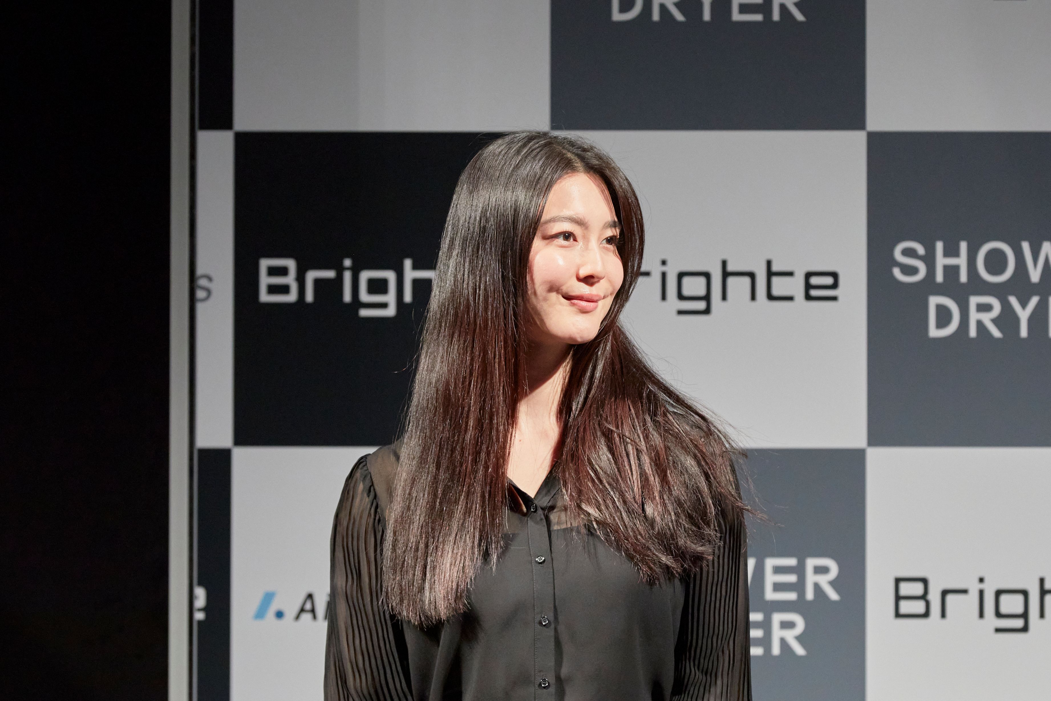 発表会ではCMに出演する佐々木希さんが登壇し、SHOWER DRYERのデモンストレーションが行われました。