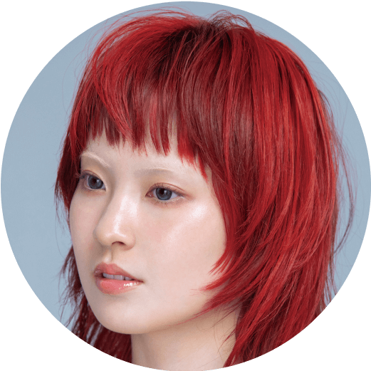 コントロールカラーのオレンジに、スカーレットとスピネルで赤みを足してビビッドな深みを演出。根元は外して塗ることで地毛を生かし、自然なコントラストと奥行きのあるデザインに。束感や動きが際立ち、ショートヘアに立体感を出すのにおすすめ。