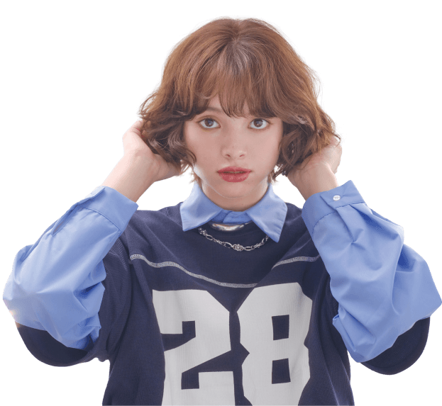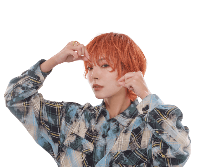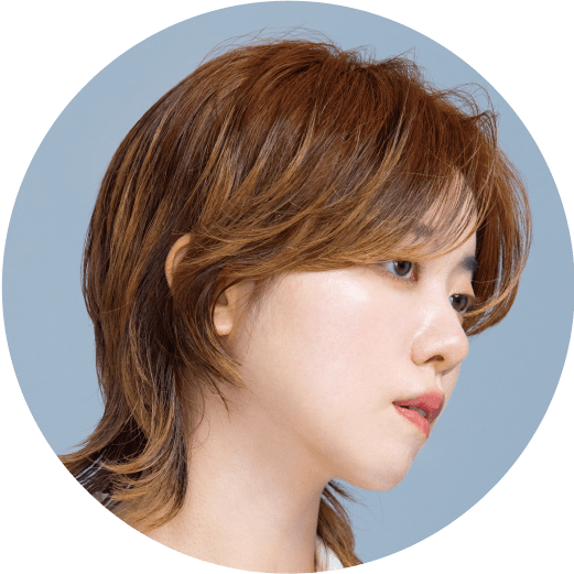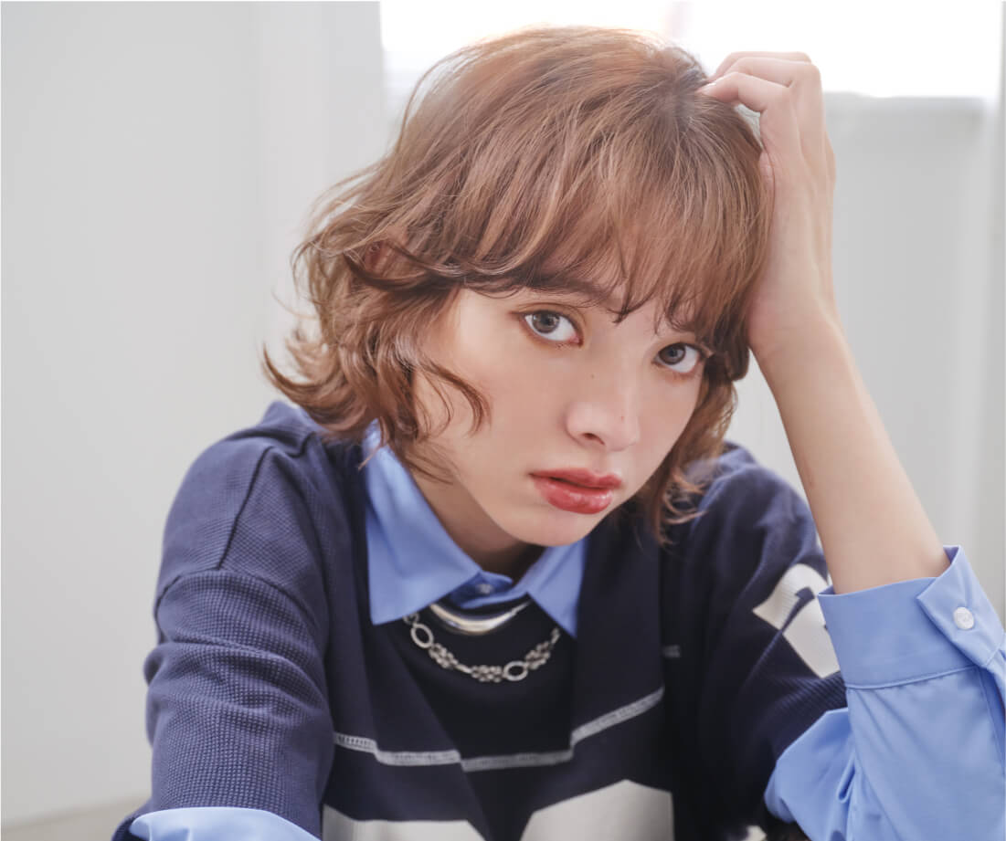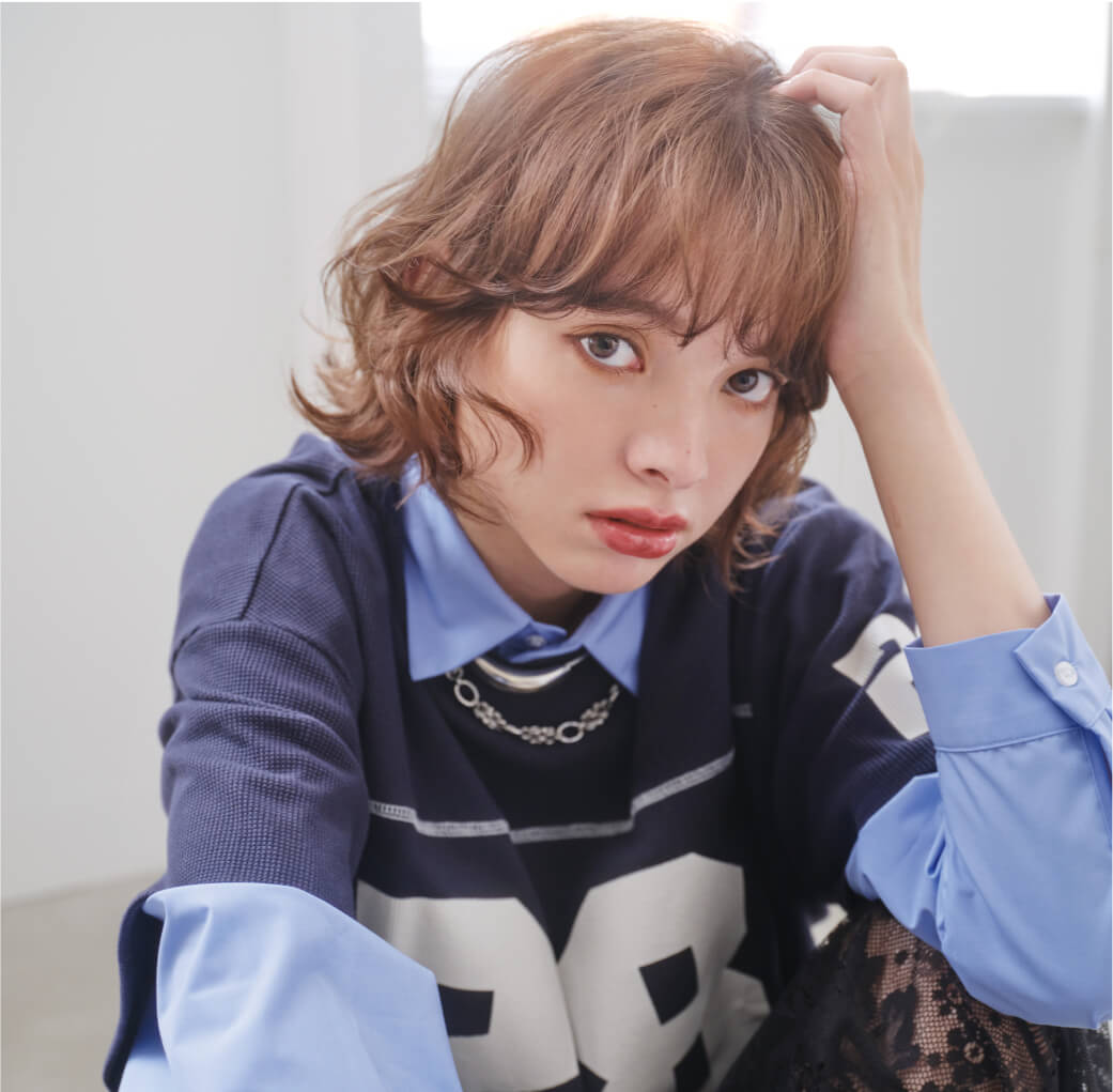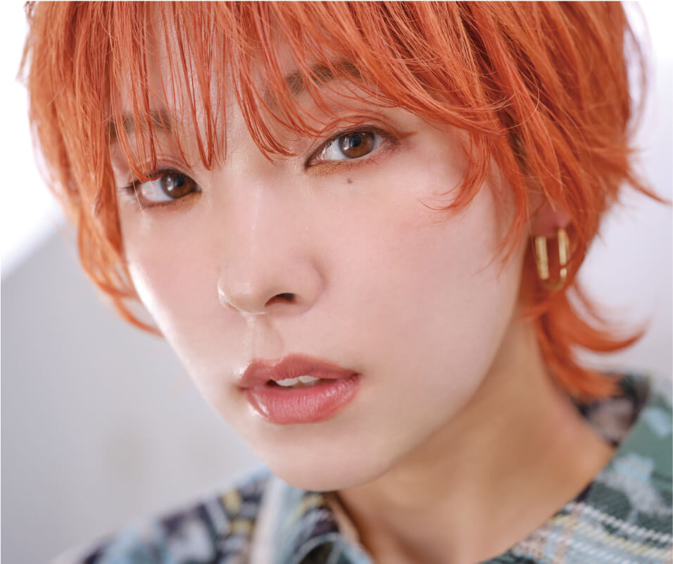 根元をはずして鮮やかなオレンジをオンカラー。色のコントラストで奥行きを出し、ショートをより軽快かつモードな印象にチェンジ。ビビッドながら服になじみやすく、毎日のスタイルに新鮮さを添えてくれる。