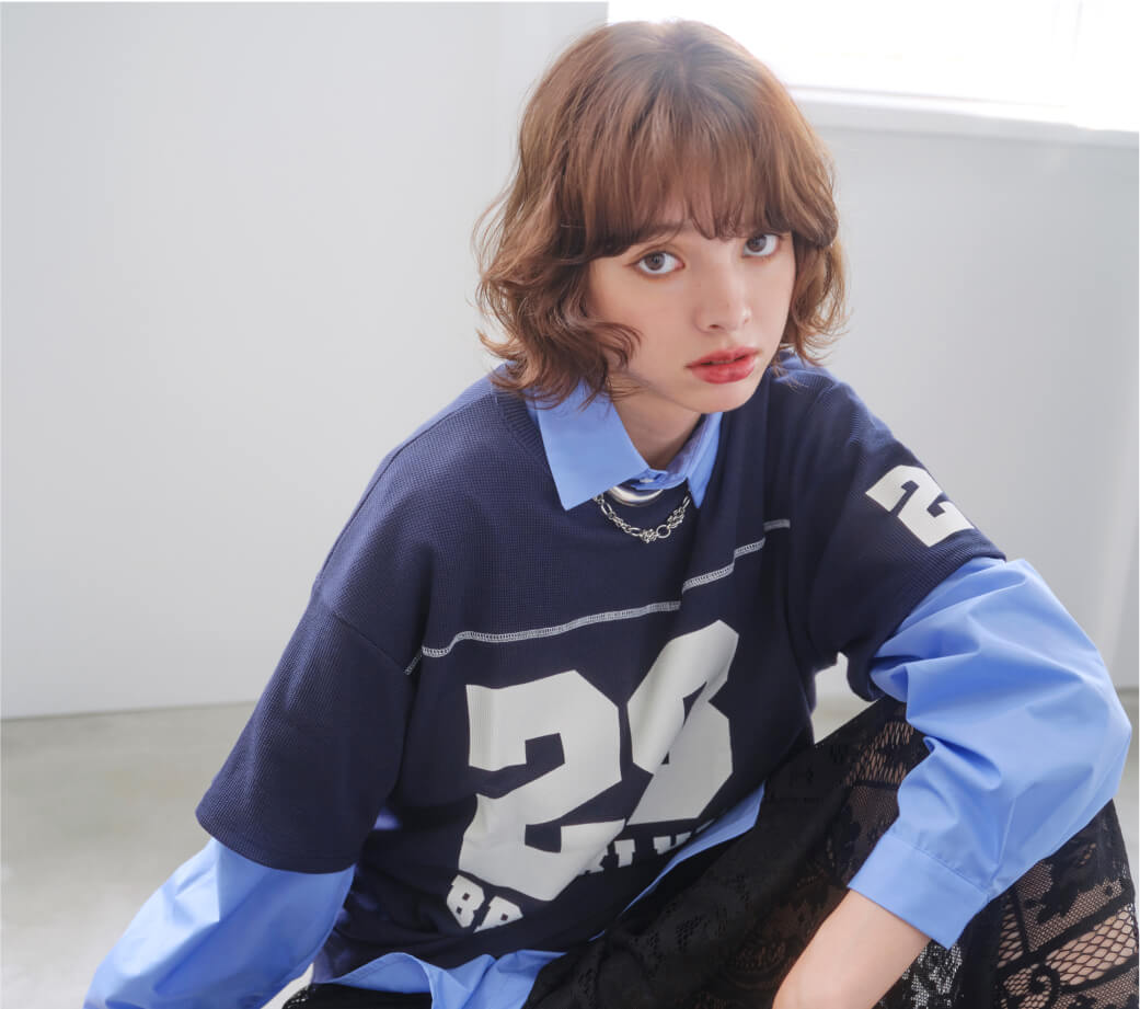 シャツ ¥18700、タンクトップレイヤードトップス¥11550/ともにGBH、その他スタイリスト私物