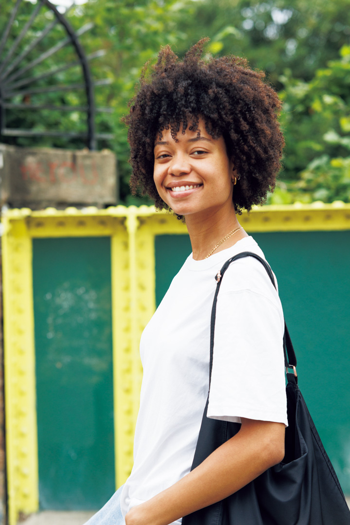 Occupation: モデル シンプルなファッションが際立っていたMollee、優しい笑顔も印象的。額に垂れているコイル状の前髪のかわいさにキュン! パーマではなかなか再現できないナチュラルな魅力。