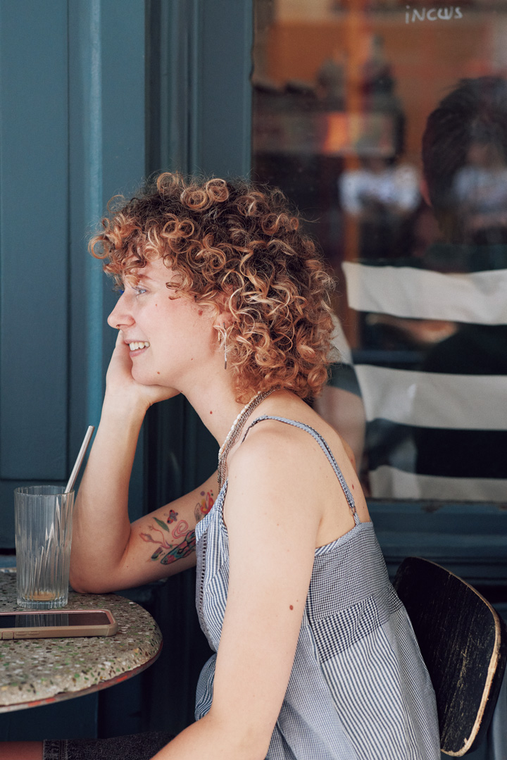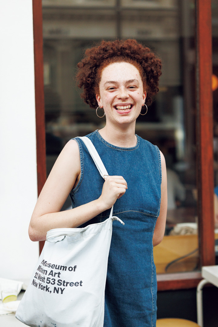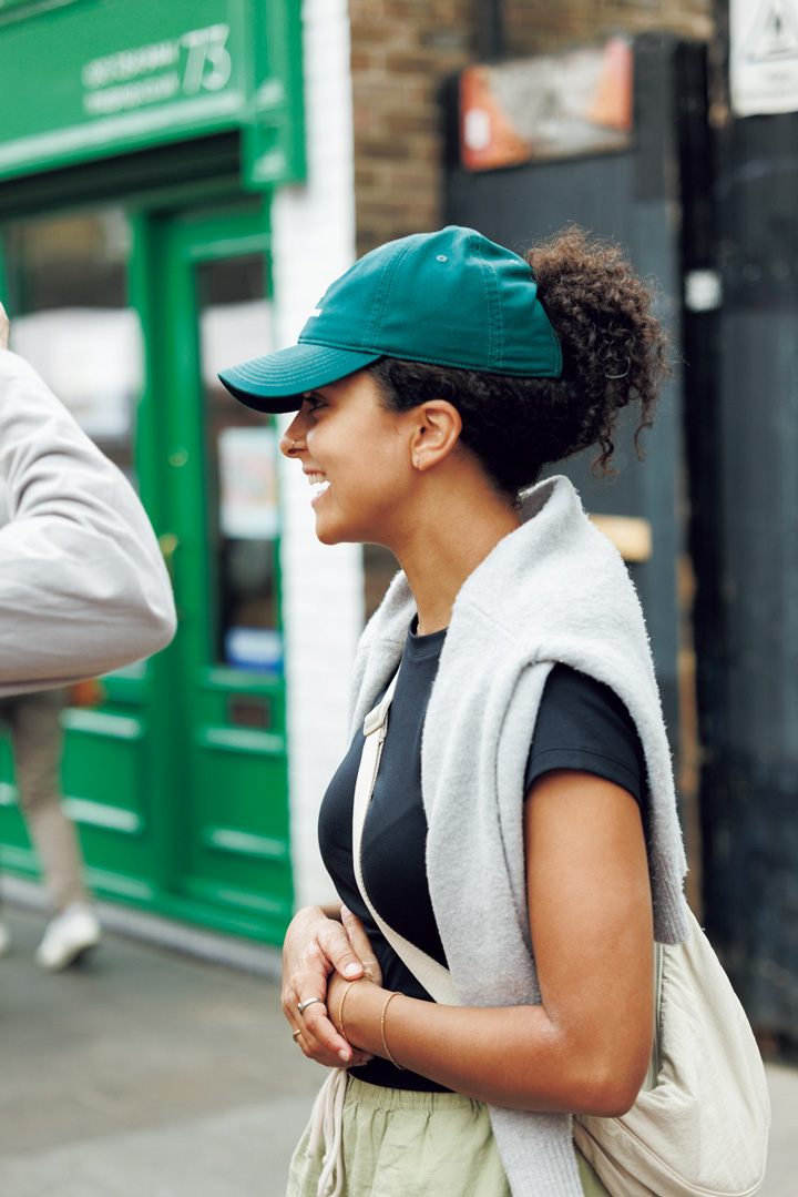 Occupation: セラミックアーティスト ウィンブルドンキャップがキュートなLogan。この被り方を真似するためだけにパーマをかけたくなるほどかわいかった! ポニーにせず適当にまとめてお団子にしているのがキモ。