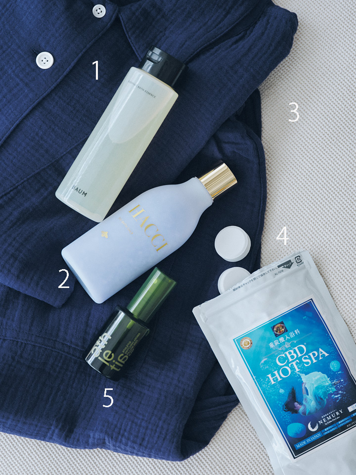 足の先から、お腹、デコルテまでボディのカサカサも見逃せない。お風呂でじっくり温まってから、オイルやクリームで優しくマッサージ。いい香りのうるおいみちみちで、素敵な夢を。