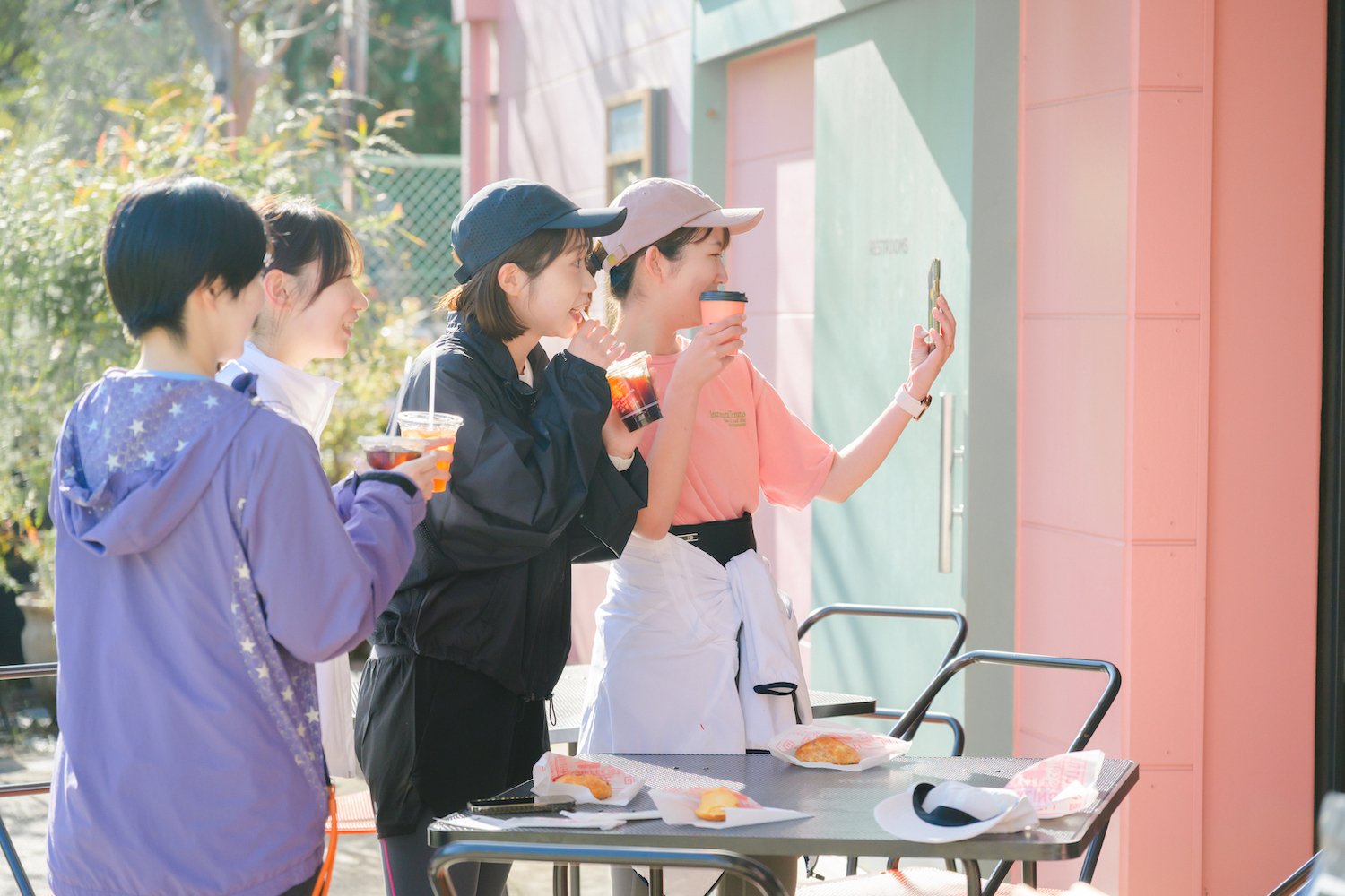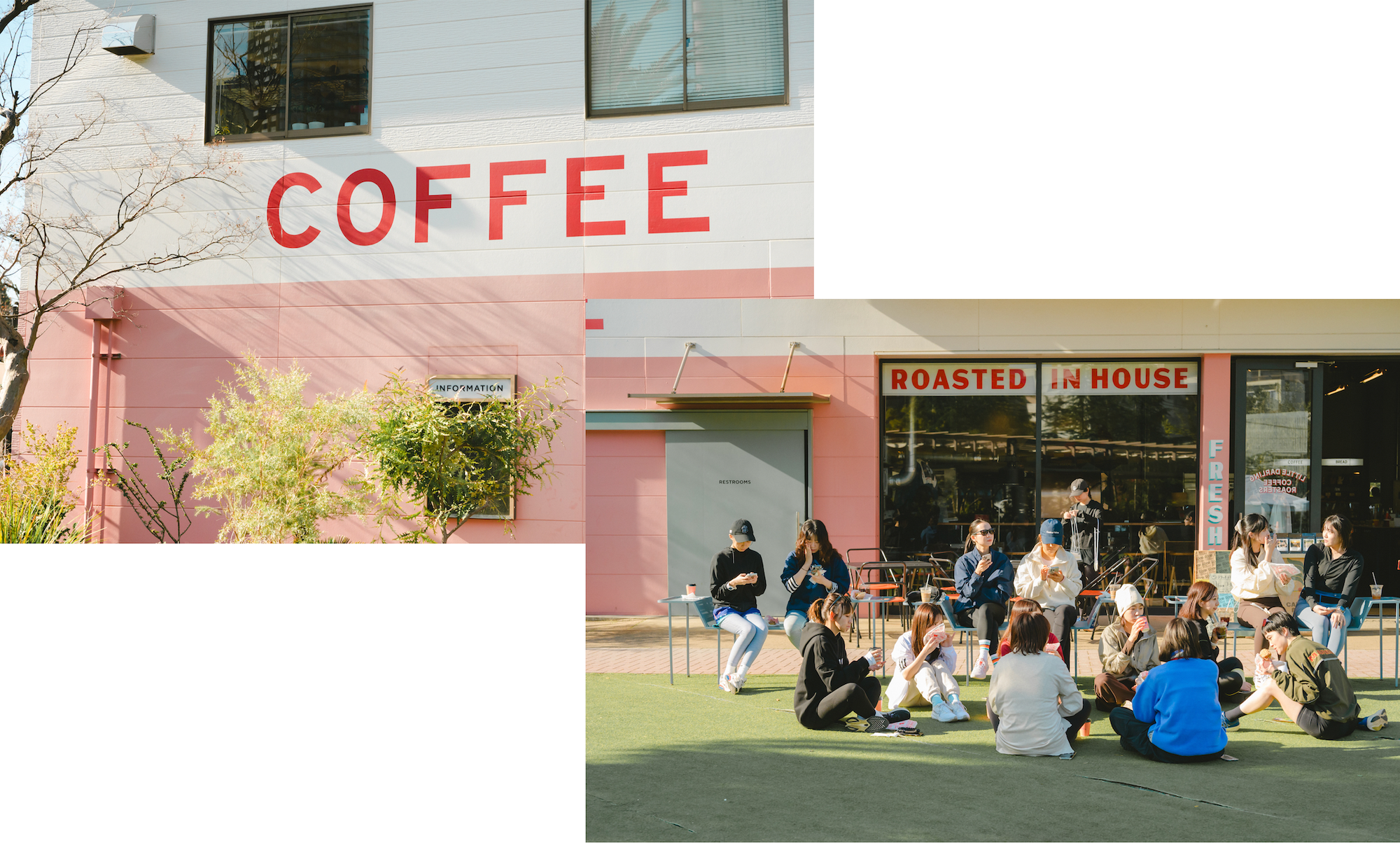 緑に囲まれた開放的な『シェアグリーン南青山』内の〈Little Darling COFFEE ROASTER〉でカフェタイム。都会のオアシスのような雰囲気で、どこを切り取っても絵になる空間。みんなで写真を撮り合ったり、連絡先を交換したり…ほとんんどがおひとりでの参加ですが、あっという間に仲良しに。