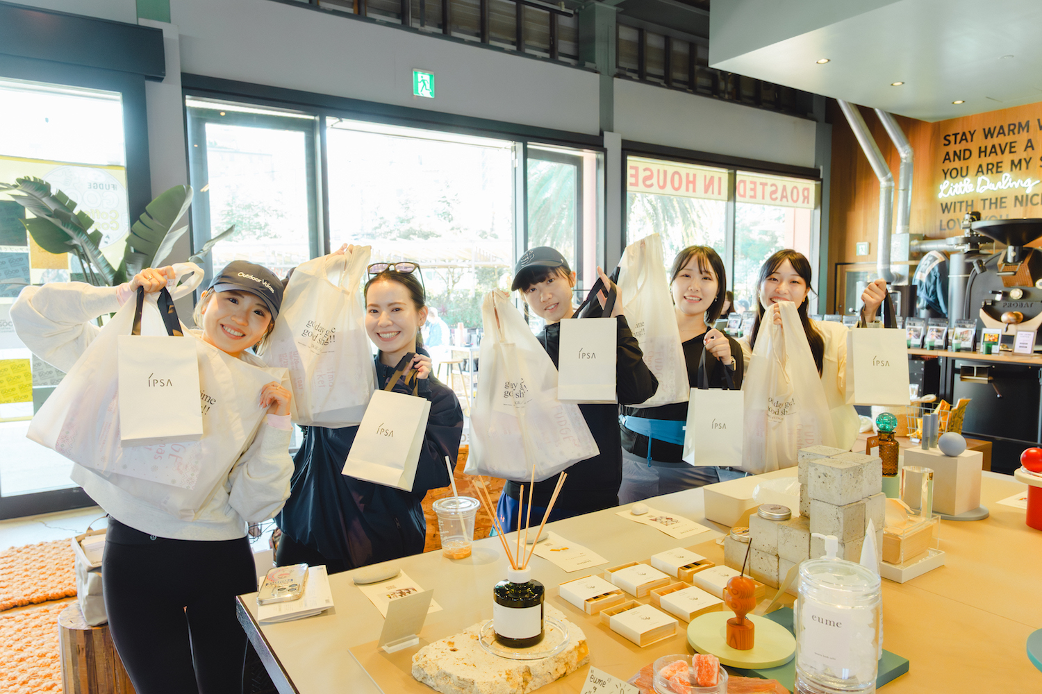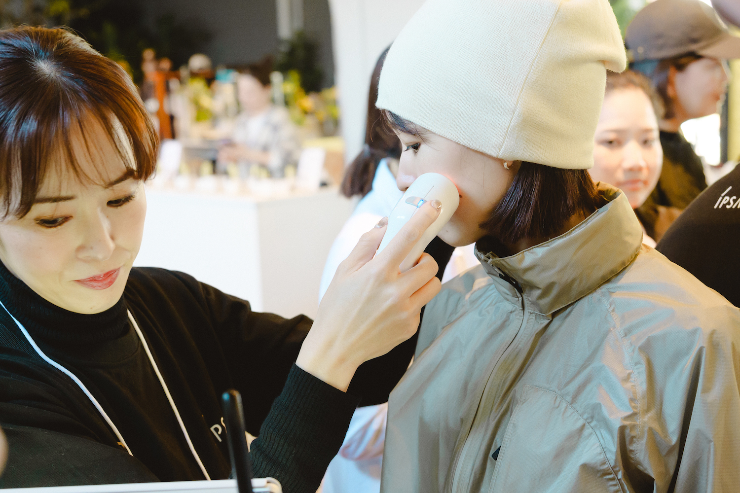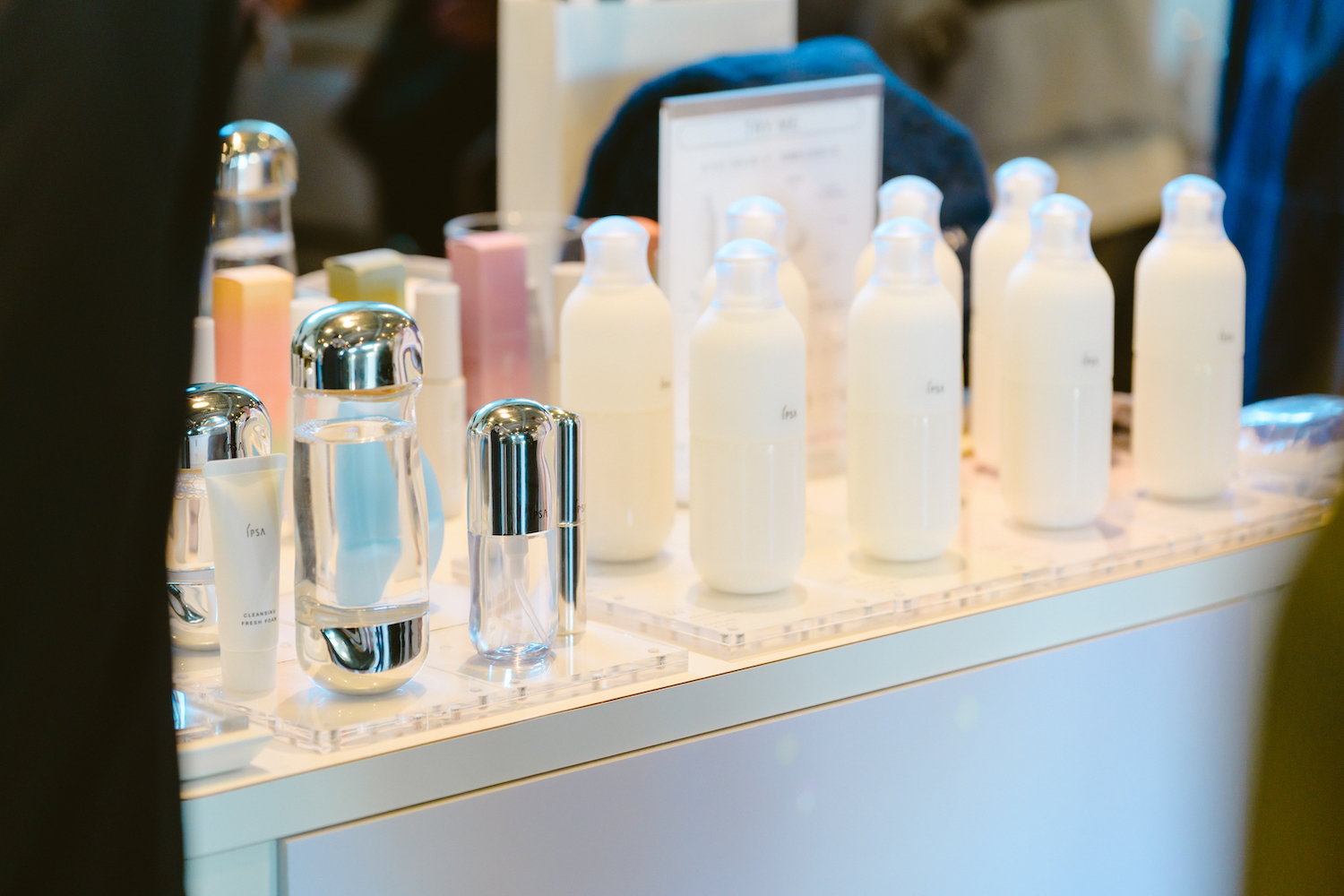 カフェタイムの後は、いよいよお待ちかねのお時間。この日〈シェアグリーン南青山〉で同時開催されていたmen’s FUDGEのイベント「グッドコーヒー&コスメ」開始前、特別に《イプサ》のブースへ。