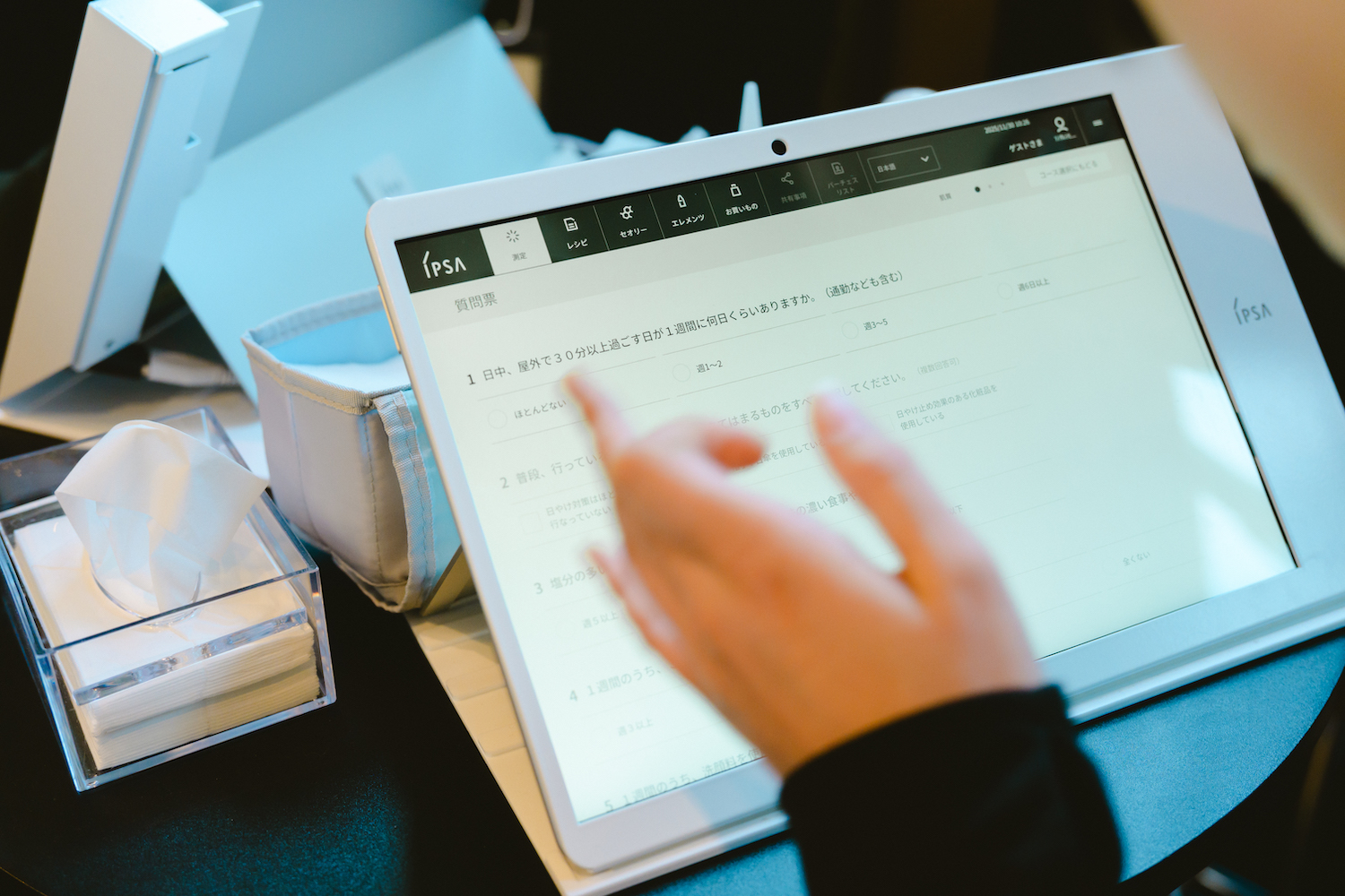 水分保持力や皮脂分泌力などを肌のポテンシャルを数値化できる独自の肌測定器「イプサライザー」を使い、1人ずつ肌を分析。結果に合わせた日々のスキンケアのアドバイスをもらったり、高機能化粧液「ME n」の中から今の肌に合うタイプを提案してもらいました。麻衣子さんは皮脂分泌が少なめで、しっとりとしたテクスチャーが最適。バランス型の桜子ちゃんは中間タイプをおすすめしてもらっていましたよ。