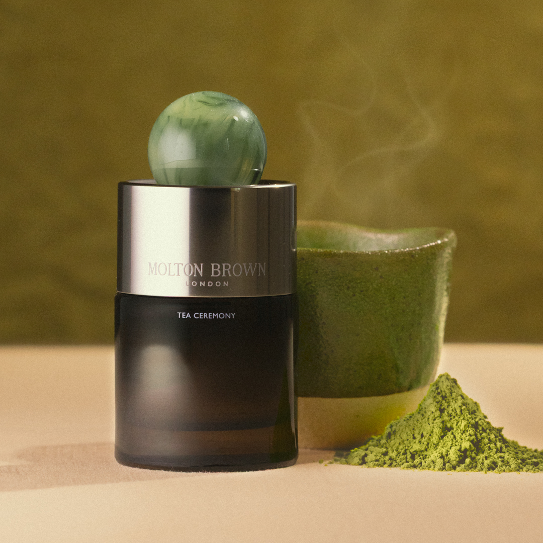 今回の新作フレグランスは、シニアパフューマーのマチュー・ナルダンが調香を手がけ、2種のティーノートを融合させることで、完璧に淹れられた一杯のお茶を味わう瞬間を現代的な香りで表現しています。
