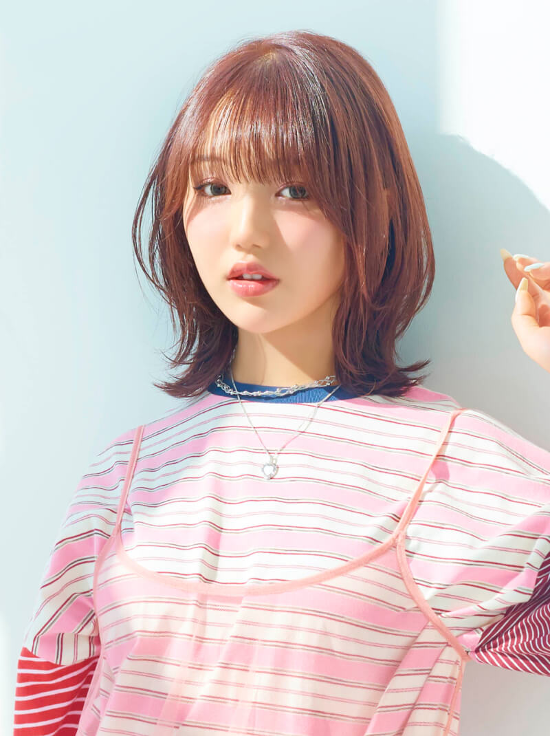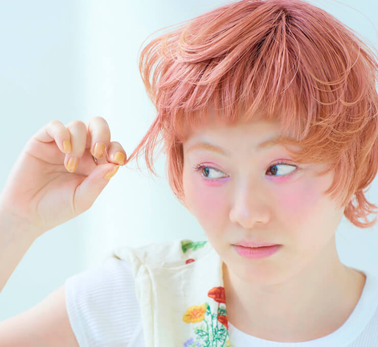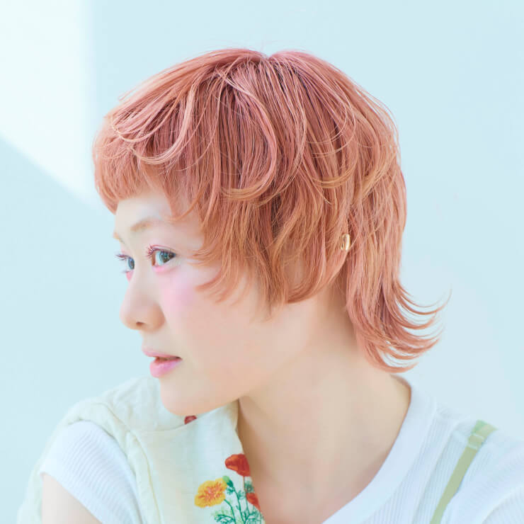 紫寄りのピンクをクリアでやわらかく薄めた、ペールトーンのピンクカラー。ウォームベージュをミックスすることで、鮮やかすぎない穏やかな発色に。くすみ感のある淡いピンクが、ショートスタイルに軽やかな洒落感をプラス。ふんわりとした、やさしい雰囲気に仕上がる。
