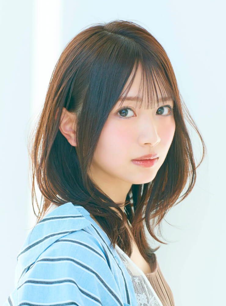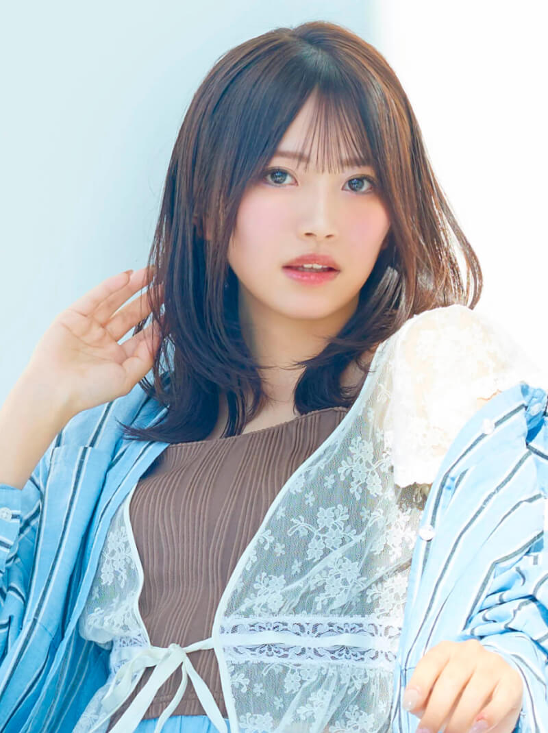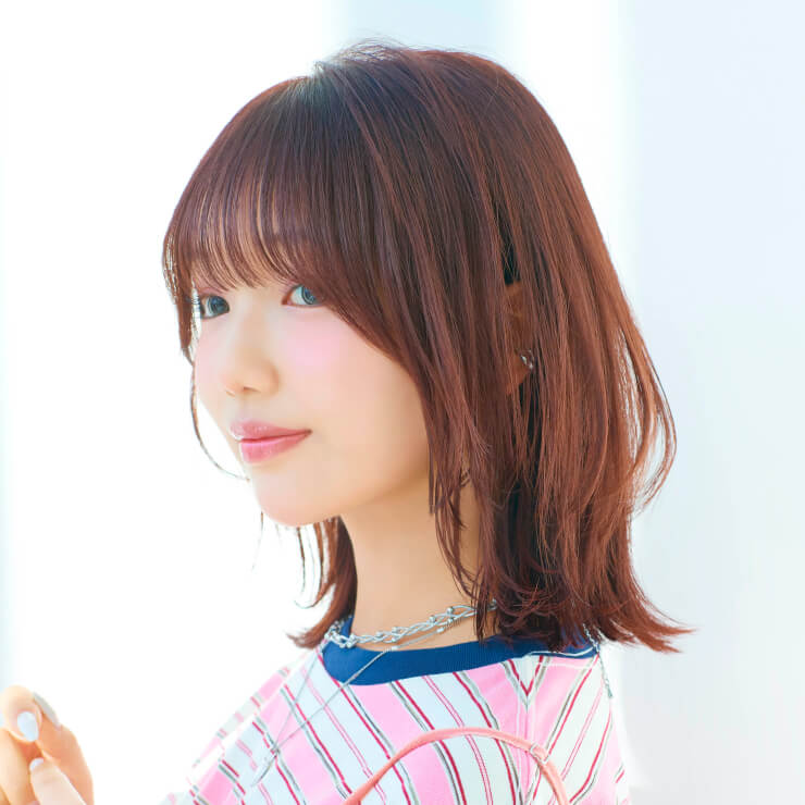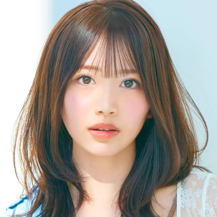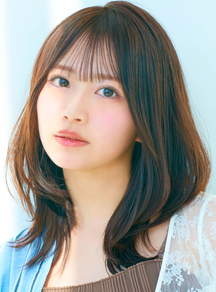 ストレートアイロンで毛先は外ハネ、表面は内巻きにしてやわらかな動きを表現。仕上げに「N. ポリッシュオイル」と「N. SHEAオイル」を少量混ぜてなじませ、内側から手ぐしを通して全体に広げる。前髪を指先でつまみ、軽やかな束感をつくる。