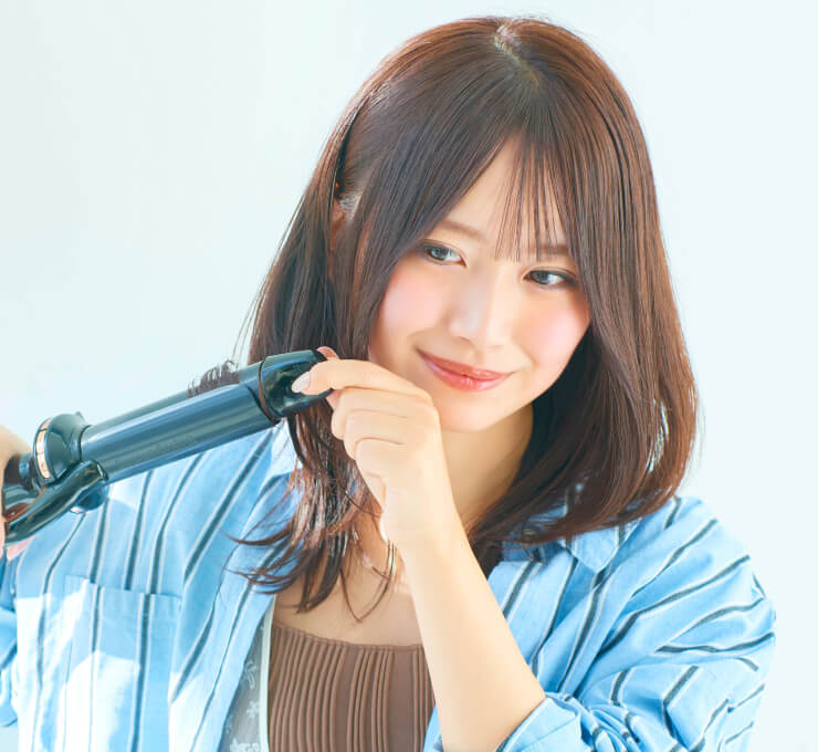 34mmのアイロンで、内側から外へ弧を描くようにすべらせてゆるくカールをオン。巻きすぎない自然な動きがポイント。仕上げに「N. スタイリングセラム」をパール粒3つ分なじませ、毛先をほぐしながらやわらかな束感をつくる。