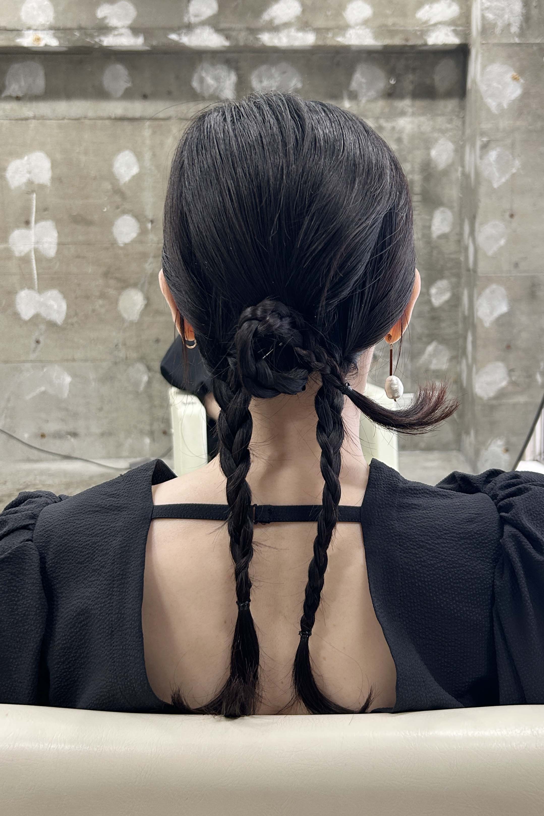 中央のお団子にCHUNKSのリボンかんざしを挿します!