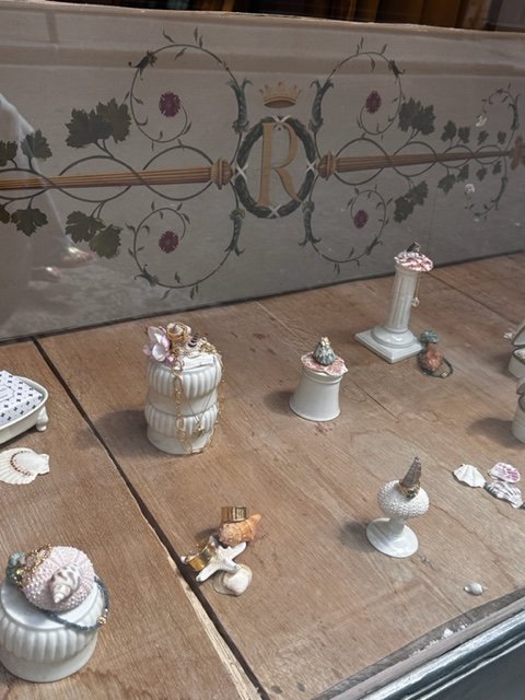 「アリックス・D・レイニス(Alix D Reins)」はリモージュ磁器のテーブルウェアやジュエリーを展開。お店のウィンドウはとても繊細なデコレーションで惹きつけられます。