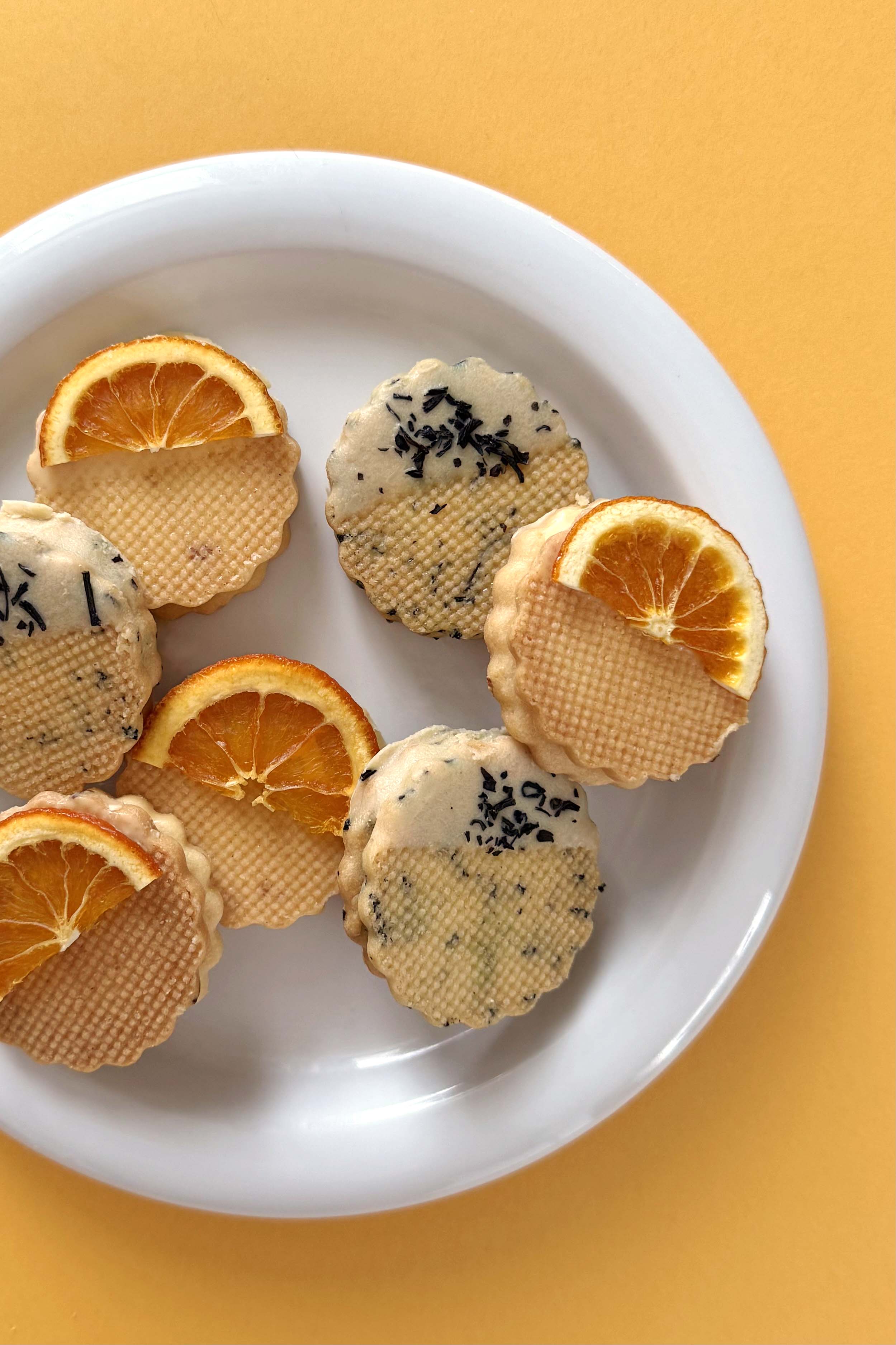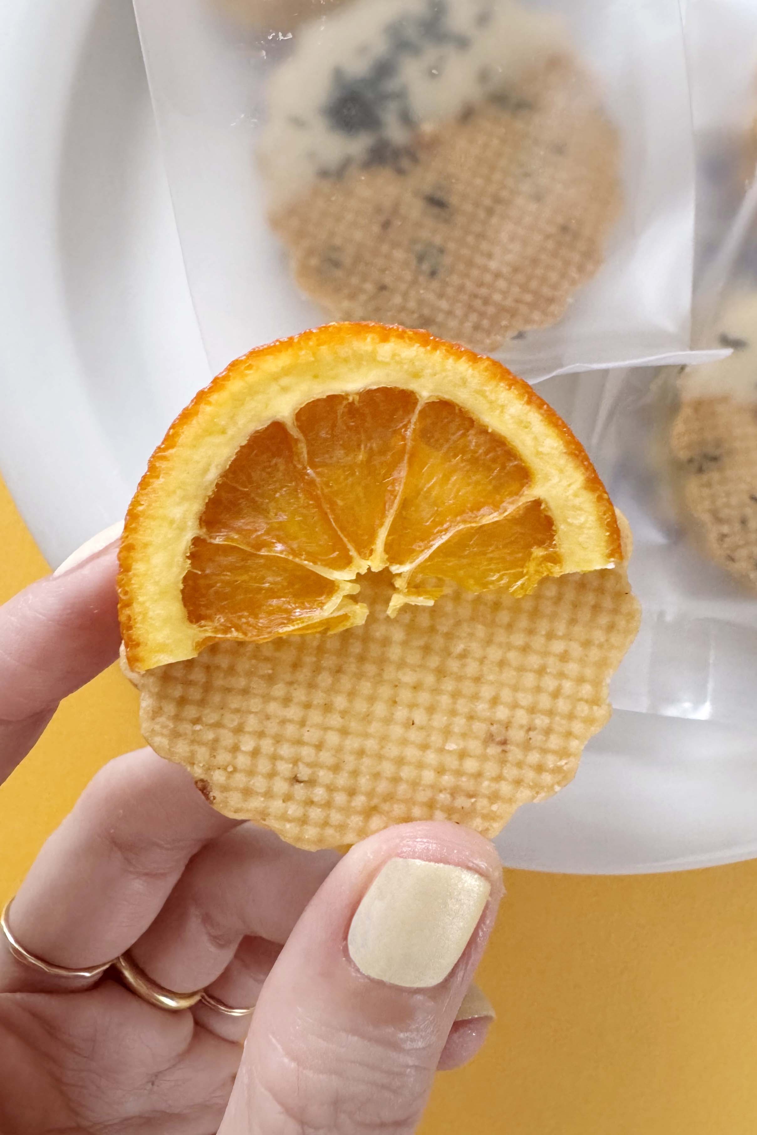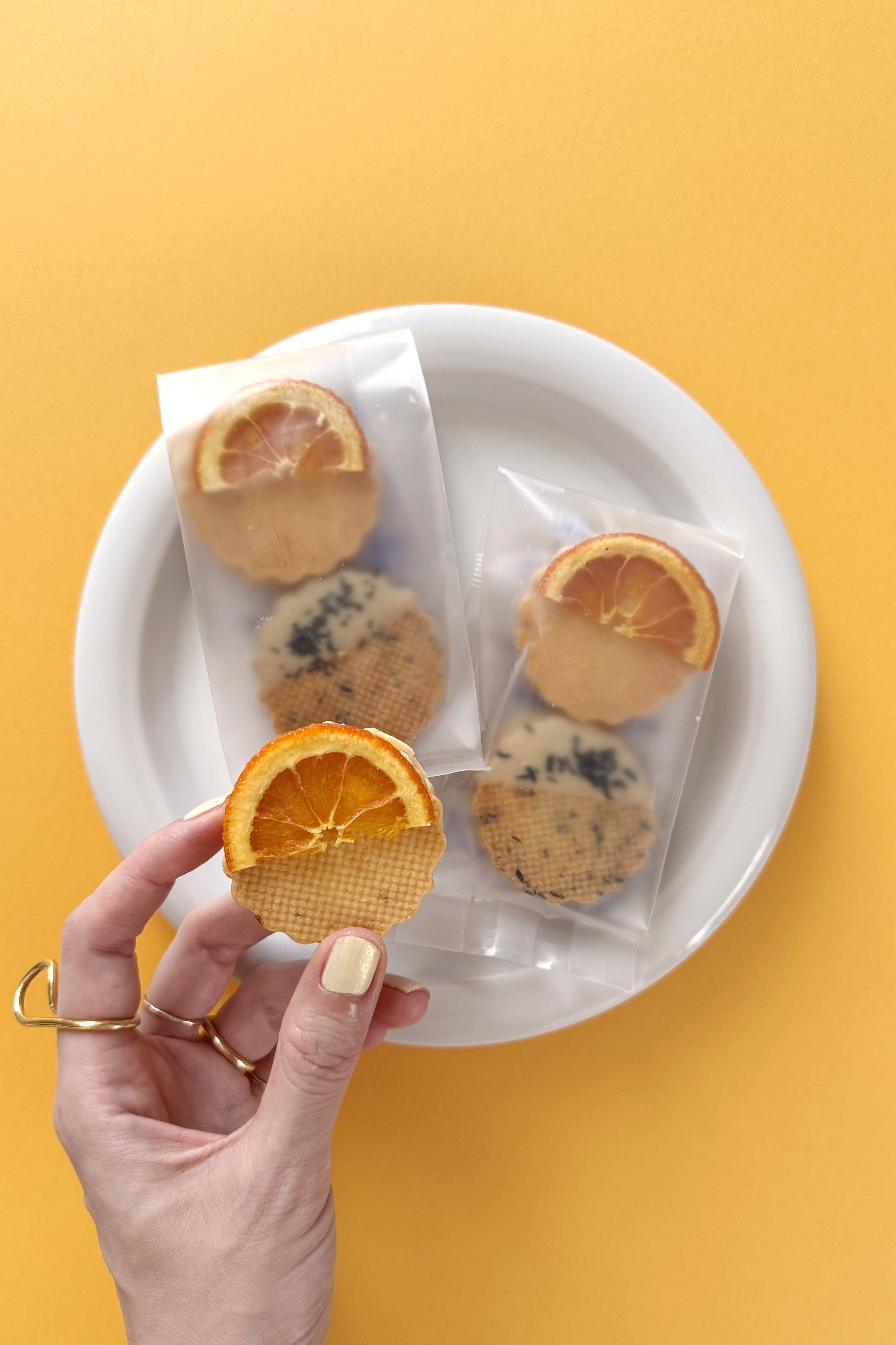 オレンジサブレは、細かく刻んだオレンジピールを練り込んだサブレ生地に、