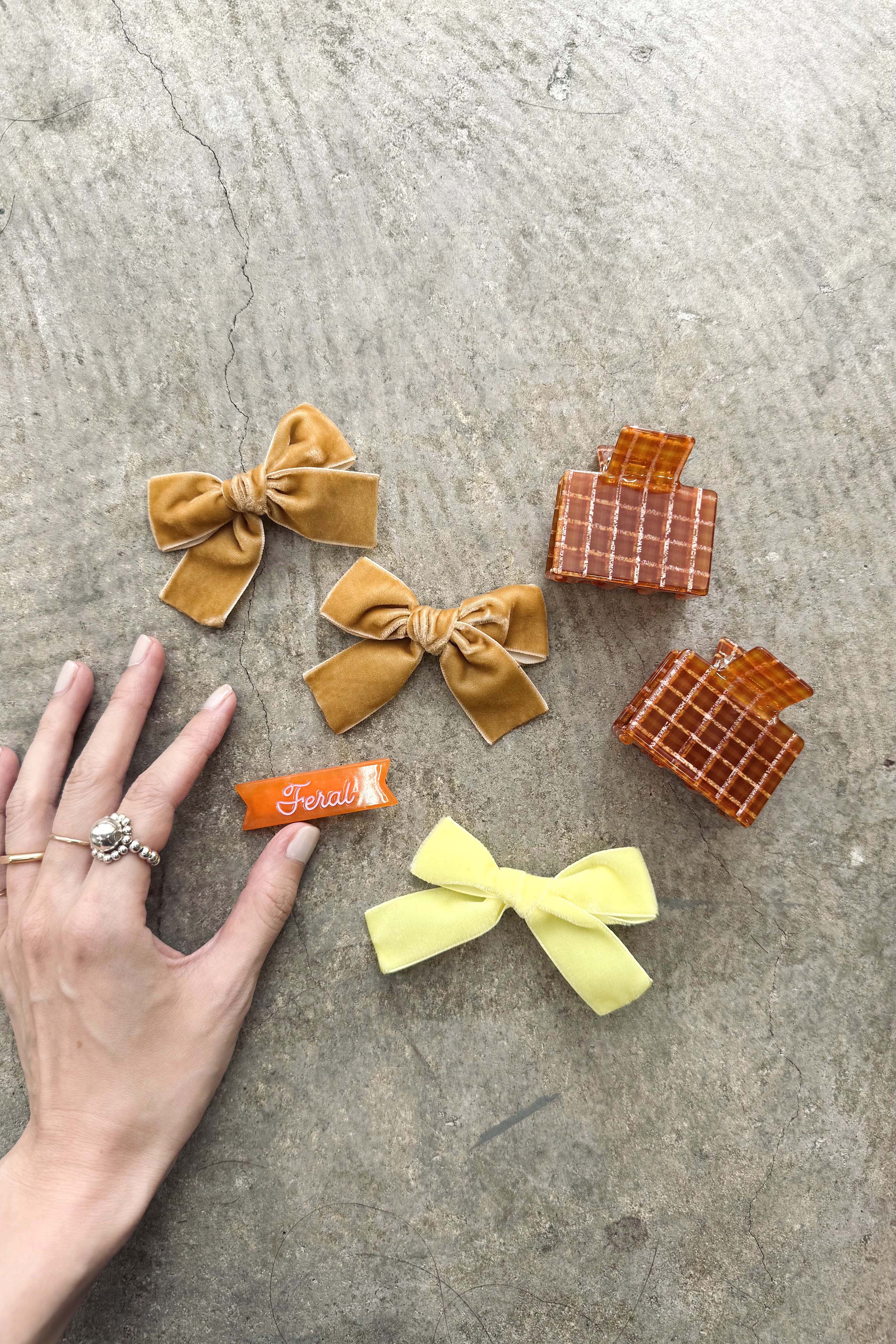 ベルベットのリボンとチェック柄のバンスクリップ、