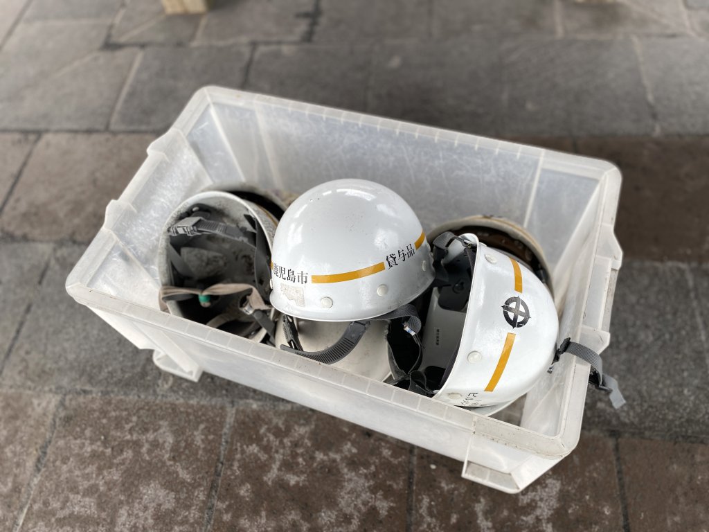 展望所にはヘルメットが。噴火が日常である様子が伺えます。