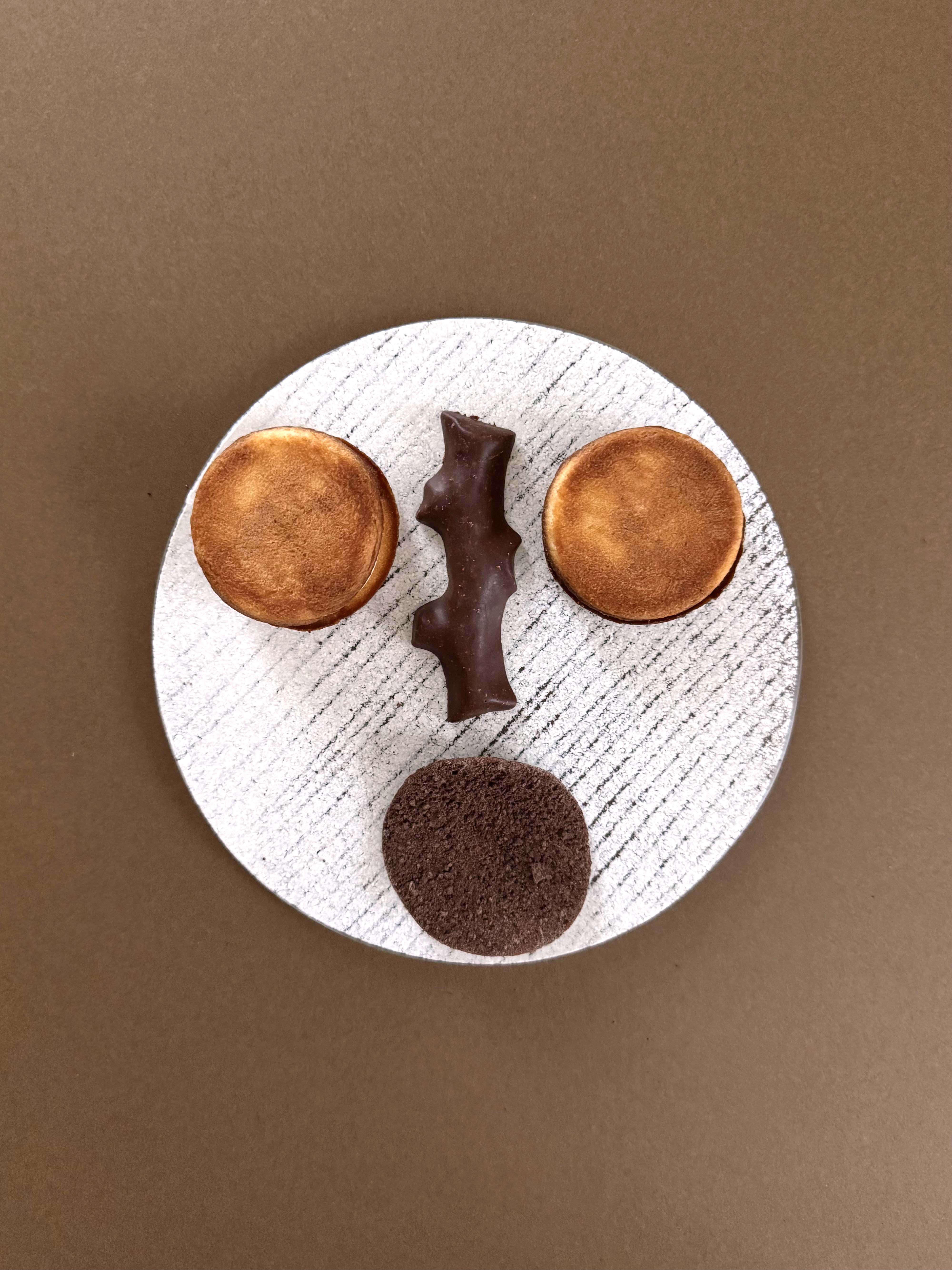 チョコの部分は、やさしい甘さのミルクチョコレートと