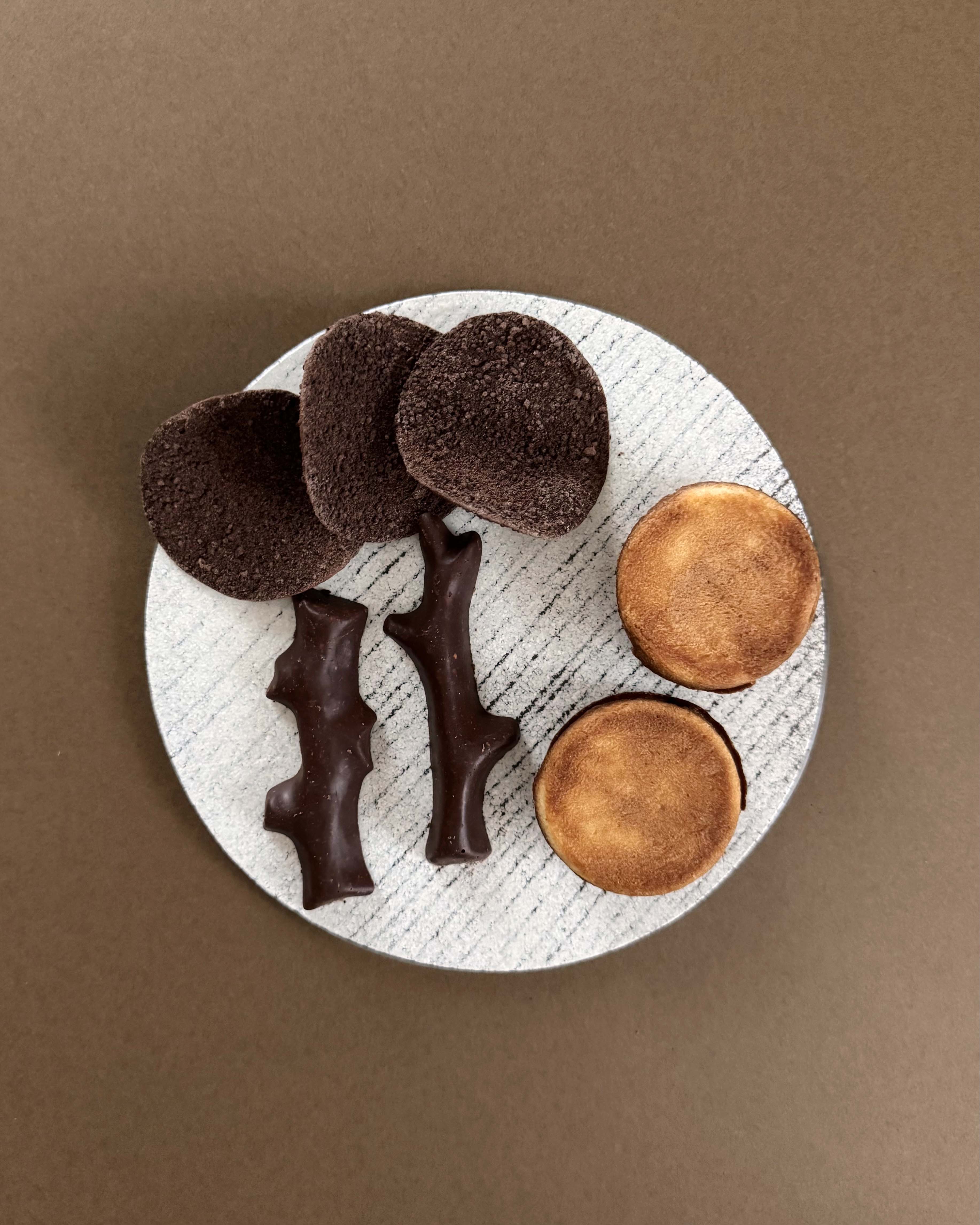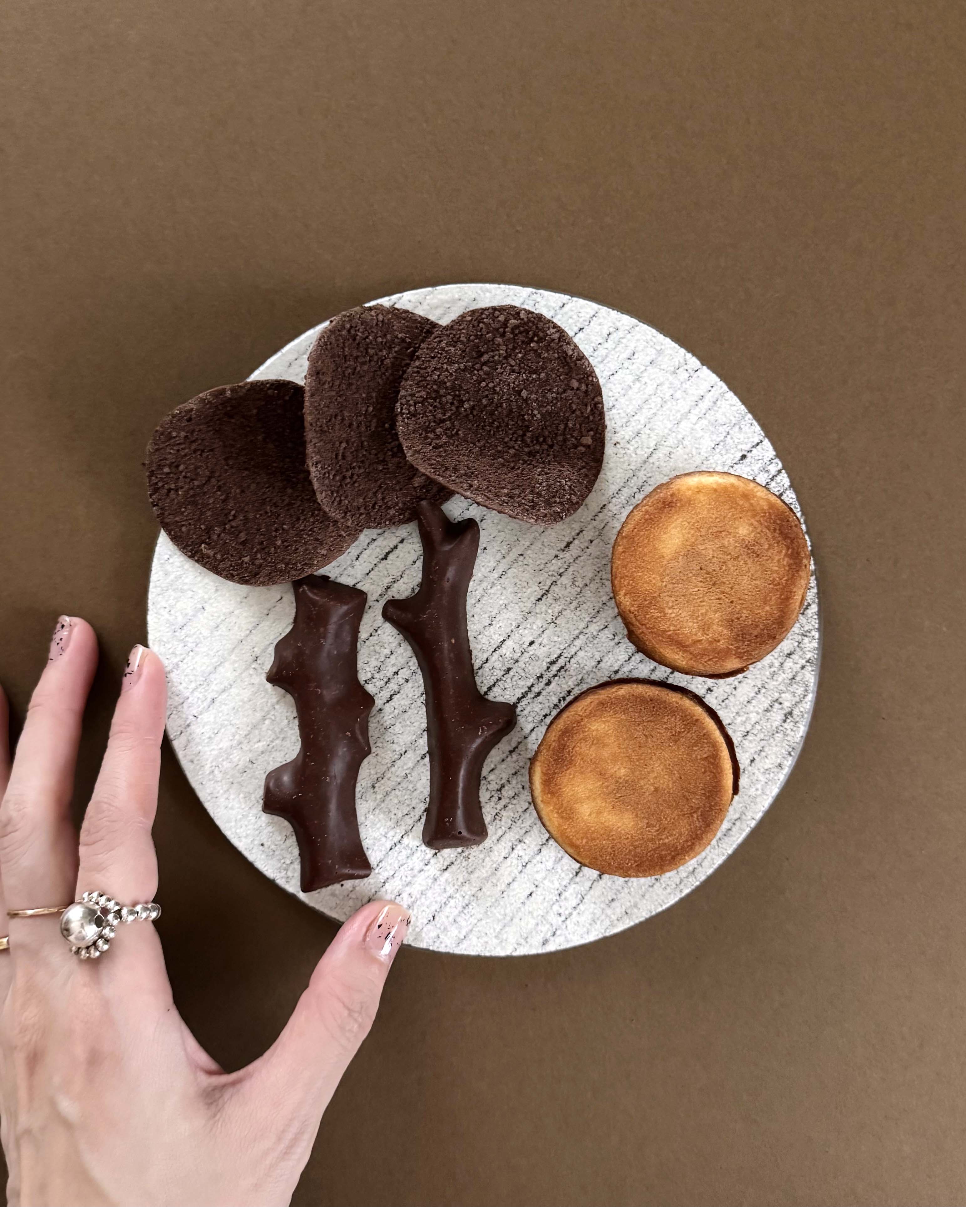 直火でひとつずつ焼き上げるラングドシャはカリッと、