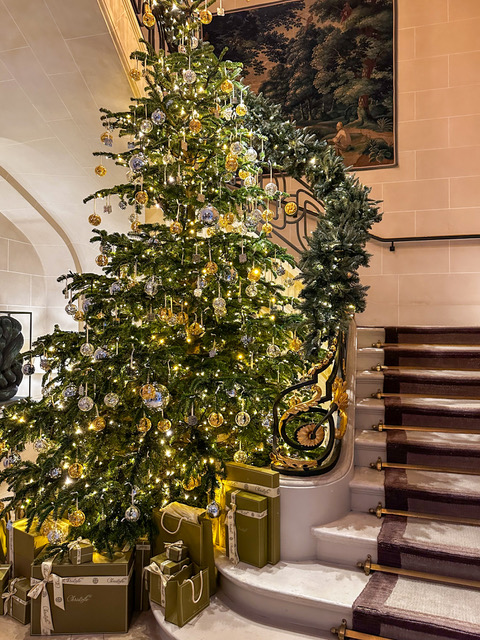 とても上品なツリーの装飾。ホテルのファサードからシックな佇まいです。
