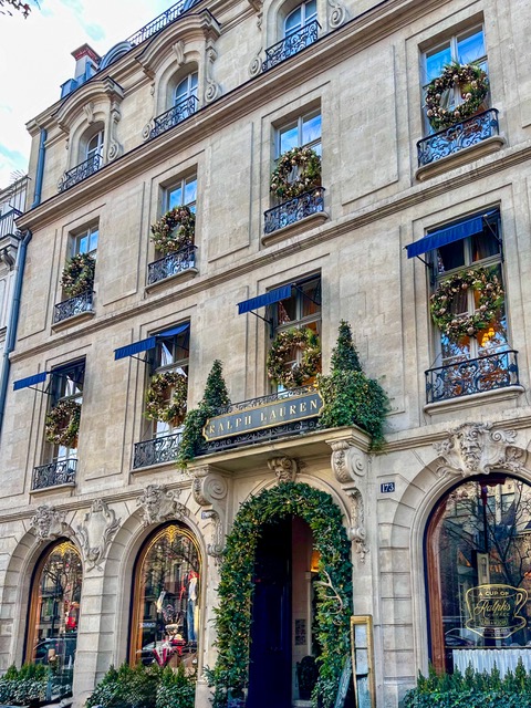 “ラルフ ローレン”のビルの窓全てにリースが取り付けられ、統一感ありかなり目立っています。