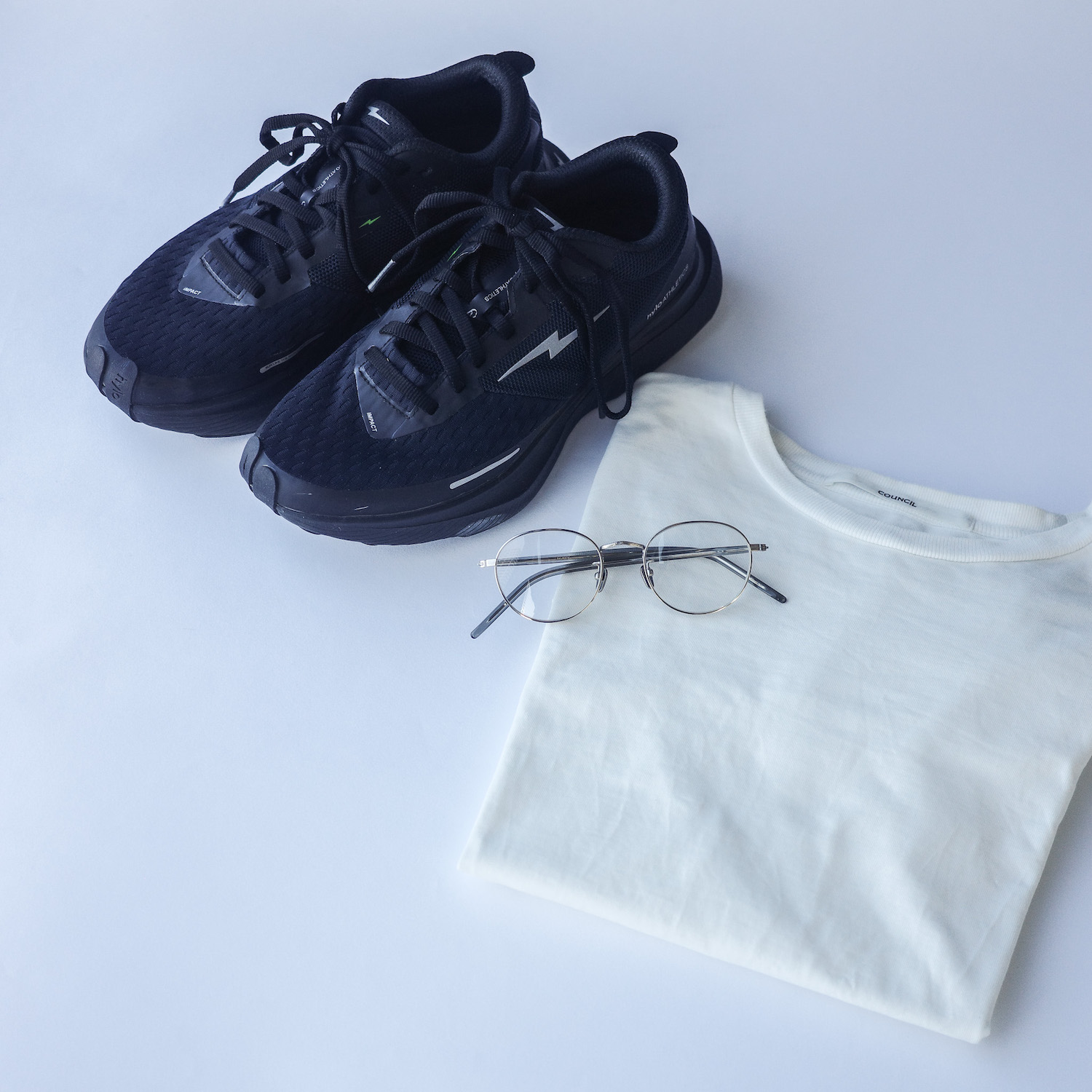 今年手に取ったものを振り返ってみると、かなりシンプル。これからも長く使えるかを自然と考えながら買い物をしていた一年だったように思います。なかでもお気に入りは、FUDGEでスタイリストとして活躍する北川沙央里さんのこだわりが詰まった《council》の白T。程よいハリがありながら着心地はやわらかい肉厚な生地感で、一枚で着てもきちんと様になる品の良さが魅力です。これは時間をかけて大切に着ていきたい一枚。《Kearney》のメガネは、ずっといつかはと思っていた存在。このデザインは売り切れ次第で終わりと聞いた瞬間、迷いはなくなってお迎えしました。そして、今年一番履いたランニングシューズといえば、夏に日本上陸したばかりの英国発ランニングブランド《hylo ATHLETICS》の「hylo IMPACT」。柔らかすぎず、硬すぎないバランスの取れた走り心地。オールブラックのスタイリッシュなデザインで、ランだけでなく普段使いでも頼れる存在でした。来年は理想のボトムス(特にデニム!)に出会いたいなと思っています。