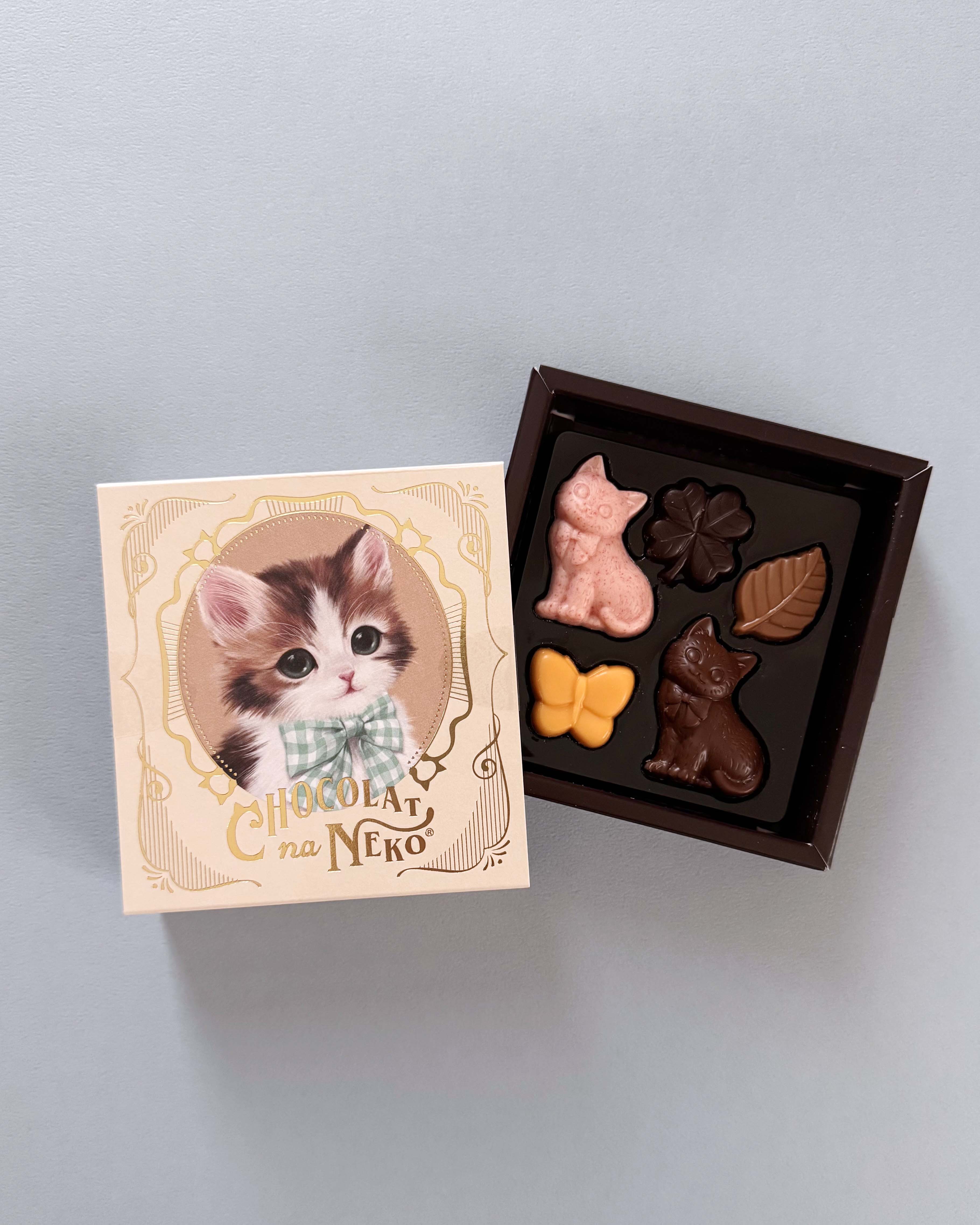 猫、四つ葉のクローバーや、蝶々などのチョコレート、