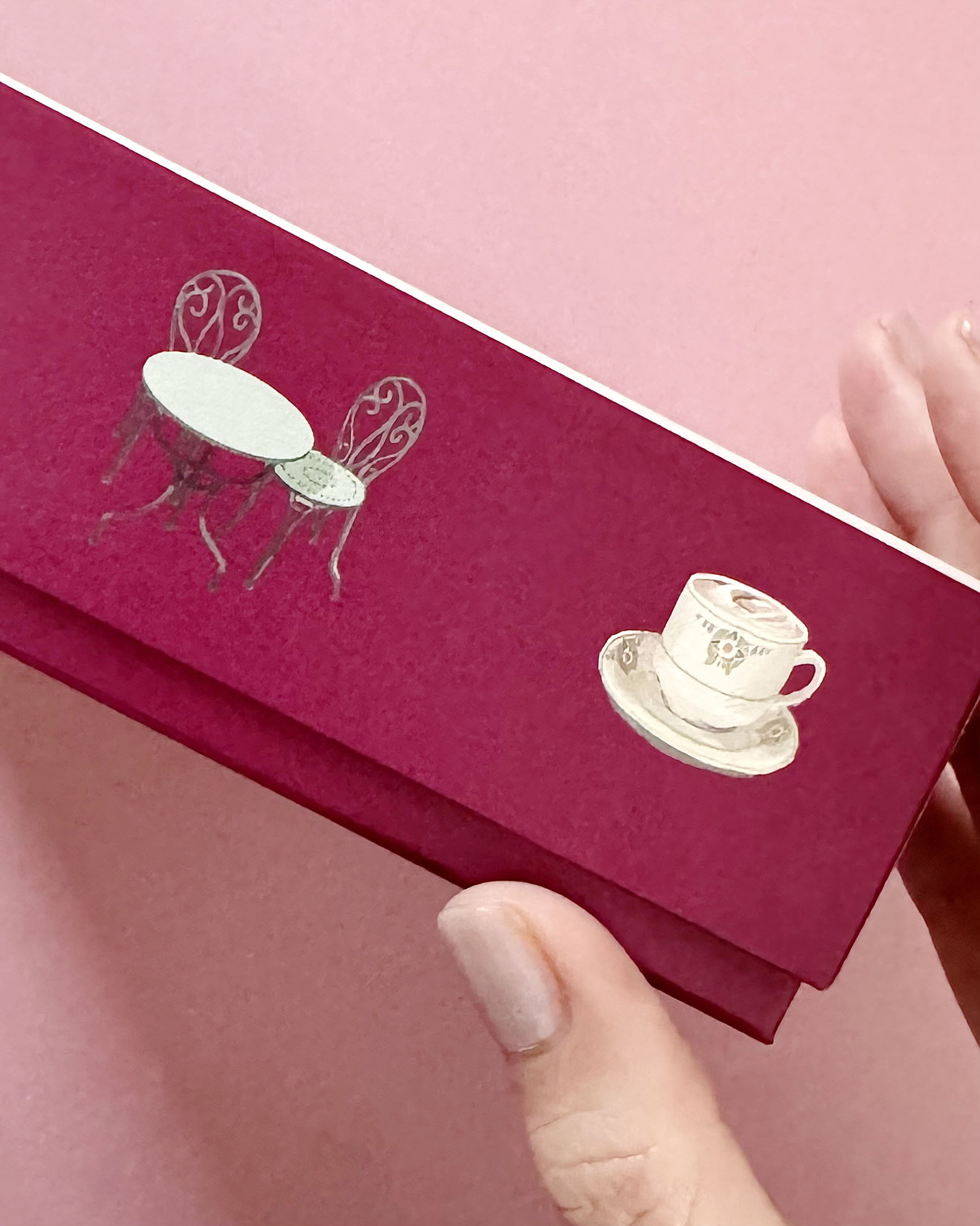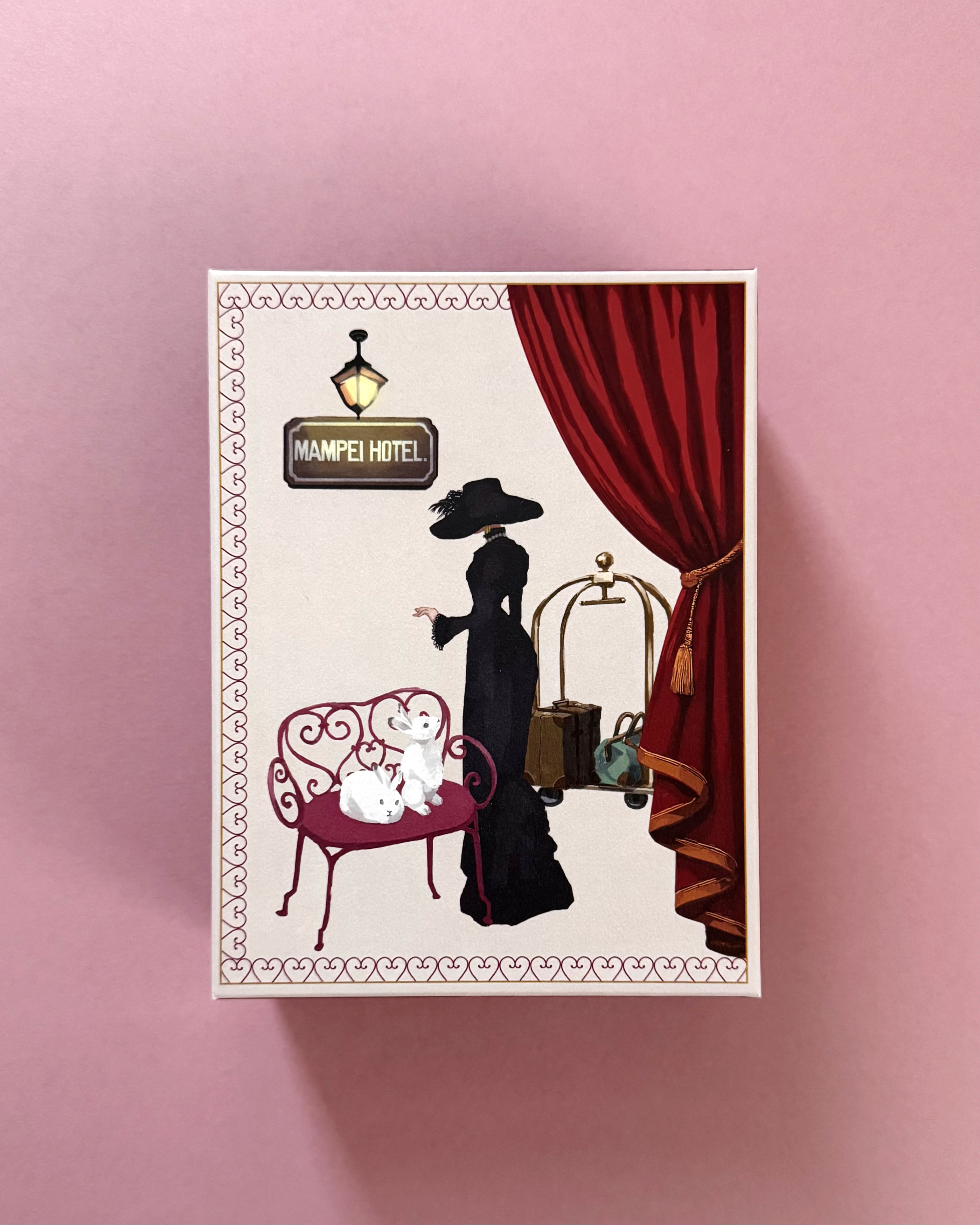 貴婦人の優雅な滞在をイメージしたデザインの紙箱は、
