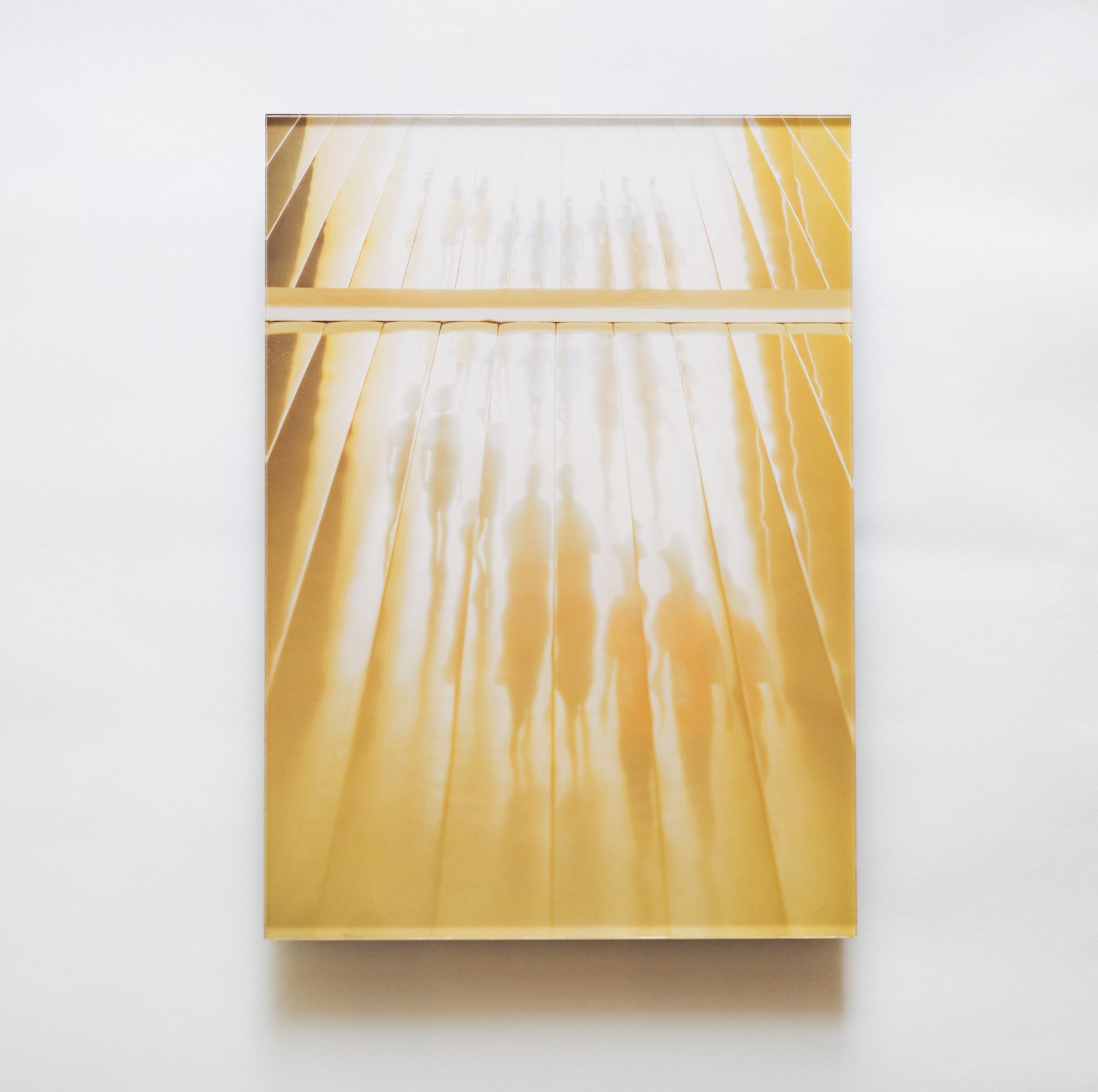 私の部屋を彩るアートピースは、写真家・金本凜太朗さんのフォトアクリル作品。この写真は、クアラルンプールの商業施設の天井に映った光景を切り取ったものだそう。あくまで現実の一瞬を写したものですが、まるでグラフィックデザインのような、不思議な奥行きが印象的。やわらかな光に包まれた風景と、ぼんやりと浮かび上がる人影は、見るたびに朗らかな気持ちにしてくれます。
