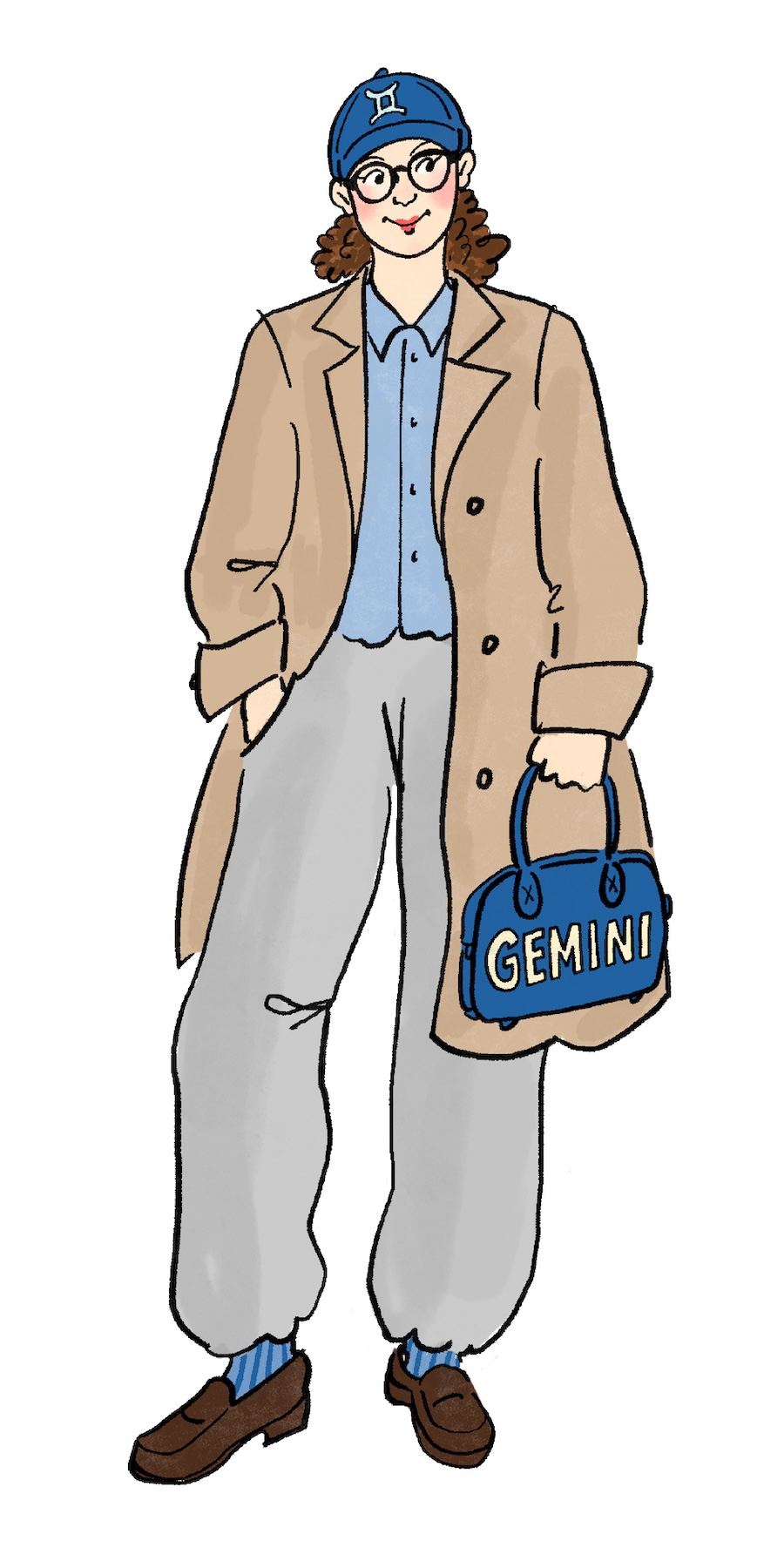 知性と軽やかさを演出できるブルーは双子座さんと相性抜群。薄手シャツやカットソーなど、さらっと着られるトップスがおすすめ。ミニショルダーやキャップで遊び心を添えると、コミニケーション運がアップ。爽やかな風をまとうような着こなしが出会いを引き寄せます。