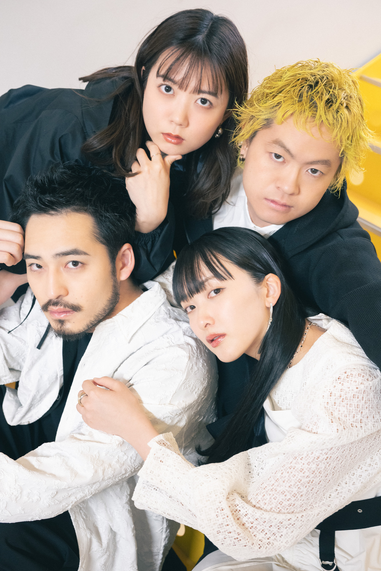 【緑黄色社会】写真左から小林壱誓(Gt.)・長屋晴子(Vo./Gt.)・穴見真吾(Ba.)・peppe(key.)