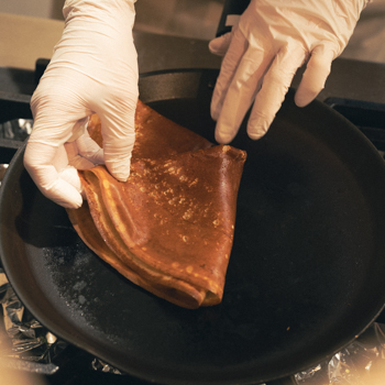 〈オーシー トーキョー〉のコーヒーは、シェフの田井さんがコペンハーゲン在住時に慣れ親しんだ〈プロローグコーヒー〉の豆を使用。現地と同じドリップマシンも導入し、バッチドブリューと呼ばれる方法でコーヒーを抽出している。取材時に提供されていた「マンダリーナ」という名前の豆は、マンダリンやリンゴ、キャラメルの風味が印象的。このコーヒーの香ばしくてふわりと甘い香りは名物の「クレープ」ともリンクして、こちらの味もぐっと引き立ててくれる。言わずもがな相性は◎。