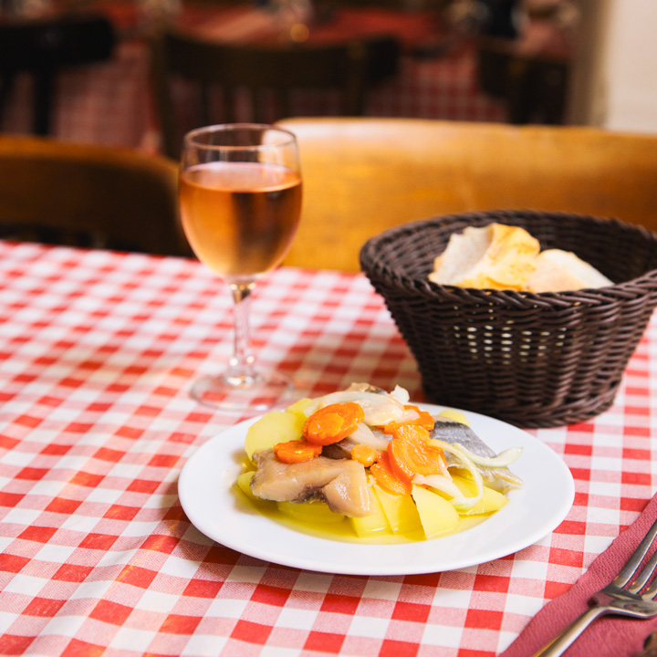 ニシンのオイル漬けは、フレンチの前菜としてポピュラーなメニュー。塩気とオリーブ&ビネガーオイル、野菜の甘みが調和し、シンプルでいてほっとする味。8€