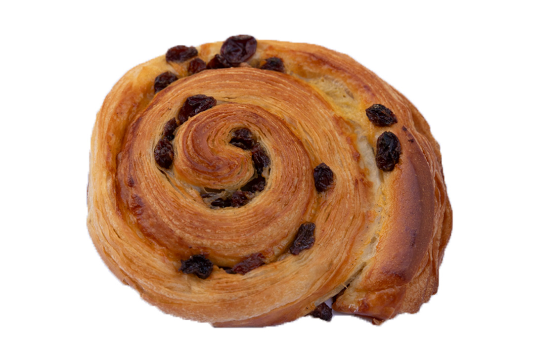 フランスの伝統的なペストリーのひとつ「パン・オ・レザン」は、クロワッサン生地のサクサク感、カスタードクリームの甘み、レーズンの酸味、すべてがベストマッチ! パン・オ・レザン2.5€