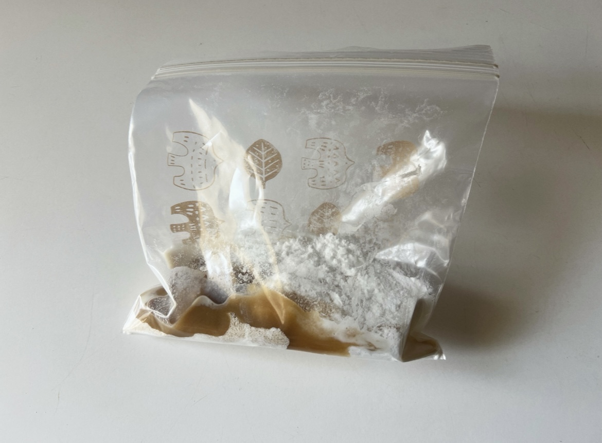 ①ジップロックにバター、米粉、きび糖、牛乳を入れて揉み込む。