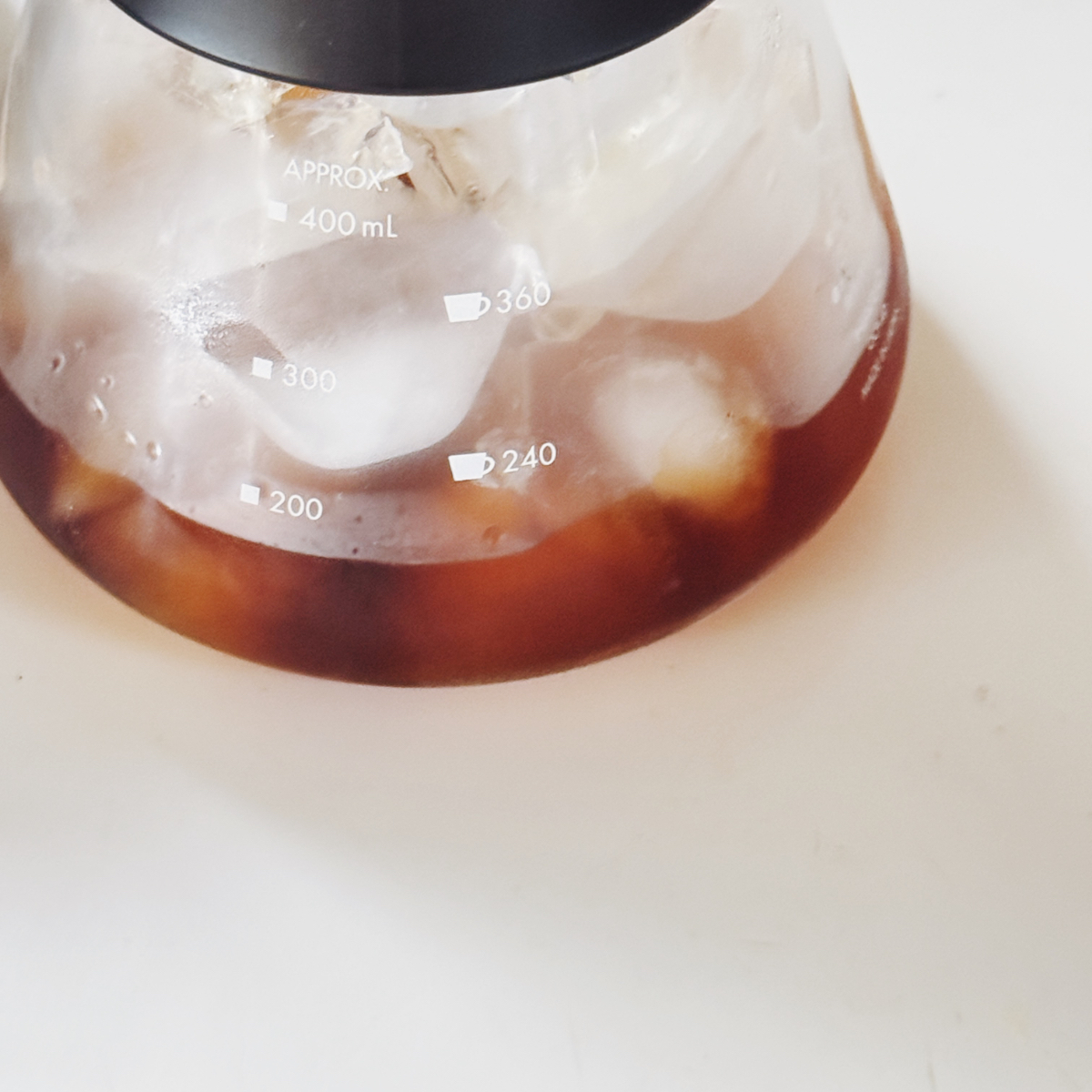 私は、いつもよりコーヒーを少し多めにしてドリップします。氷で少し薄くなりますからね。あとは、いつも通りに。あっという間に淹れたてのアイスコーヒーが完成。