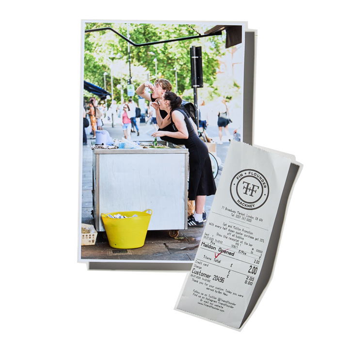 道端のストール(屋台)で、ヒョイッとオイスターを嗜む姿は、ブロードウェイマーケットでお馴染みの風景。週末限定で生ガキやロブスターバーガーなどを提供している《Fin and Flounder》は、地元のみんなに愛されている魚屋さん。手軽に£2で食べられる、スコットランド直送の新鮮なオイスターは、プリッと大粒でつい何個も注文したくなる。