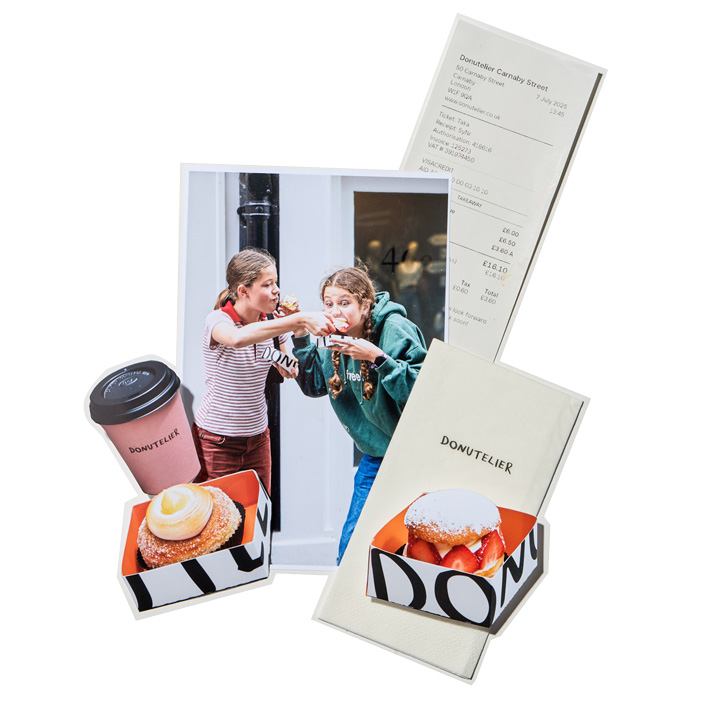 「ちょっとお姉ちゃん食べ過ぎ! 」仲良し姉妹が2人でかじりついているのは、フォトジェニックな《Donutelier》のドーナツ。イスラエル発の老舗ベーカリーが手掛ける、アルコールフリーの素材にこだわった商品は、一つひとつが大きくて満足感ばっちり。リッチな甘みのクリームと軽くてふんわりとした生地のマッチングがたまらない!
