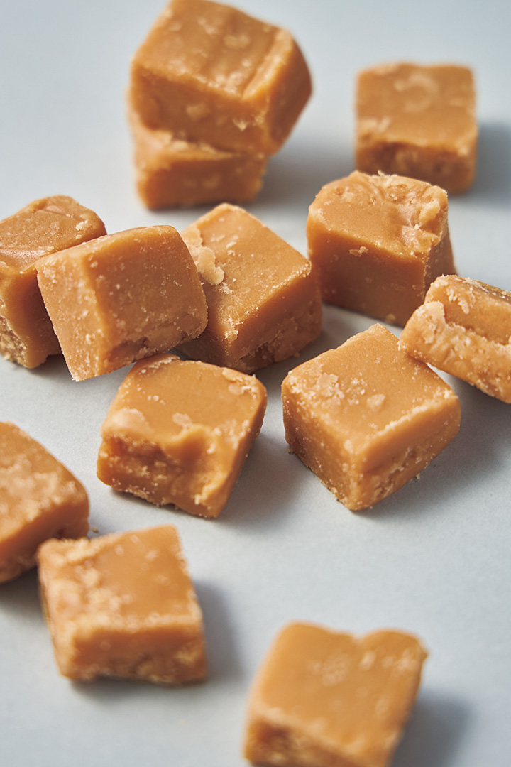 英国の焼き菓子やケーキからサンドイッチまで、豊富なメニューを取り扱う《オヒサマ》。国内産のグラニュー糖、バター、練乳、牛乳を混ぜ合わせたミルクバターファッジは、ホロリと滑らかな口溶けとミルキーな香りが魅力。食べやすいひと口サイズで、個包装なのも嬉しい。[70g]¥1200