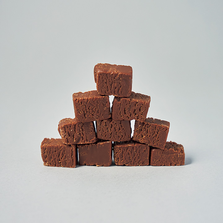 “日本の中のイギリス”をテーマに、英国の伝統菓子を九州から発信。地元産の高品質なバターやクリーム、オーガニックシュガー、フランス〈ヴァローナ〉社の高級チョコレートを使い、一つひとつ丁寧に手づくりされた濃厚なチョコレートファッジをご賞味あれ。[45g]¥500