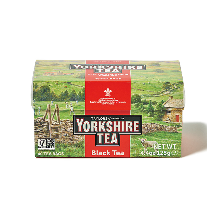 イギリスのスーパーでは必ず見かける「ヨークシャーティー」。生まれは軟水地域のハロゲイト。創業から、さまざまな水質に合うブレンドを追究してきた。厳選された茶葉を30 種類以上合わせた上品な渋みが、ミルクともマッチする。