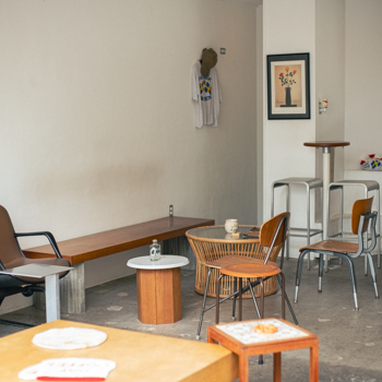 東京・不動前にあるスペシャルティコーヒーのお店〈DAY COFFEE (デイコーヒー)〉。オーナーの谷口乃規さんは、以前この場所にあったカフェ〈158コーヒーカート〉で働いていて、その店舗物件を引き継いで、自身の店〈デイコーヒー〉をオープンさせた。店内はかつての名残りである無機質な素材感も残しつつ、谷口さん好みのスウェーデンやデンマークのヴィンテージ家具に特注品のカウンターやベンチなど、ウッド系のインテリアを基調とした空間に。正面のドアを開くとできるテラス席ものびやかで心地よい。「春先には桜も見られたよ」とファージー。同店で提供しているコーヒーは、すべて浅煎りのシングルオリジン。ラインナップはそのときどきで異なるが、常時4~6種の豆がそろっている。焼き菓子類は自家製で、アップルパイ以外はグルテンフリーというのも印象的。“東京でコーヒー屋を開く”と決めて、21歳の頃にリュックサック1つで上京した谷口さん。今は東京にもう1店舗と地元・和歌山での出店も計画中だそう。