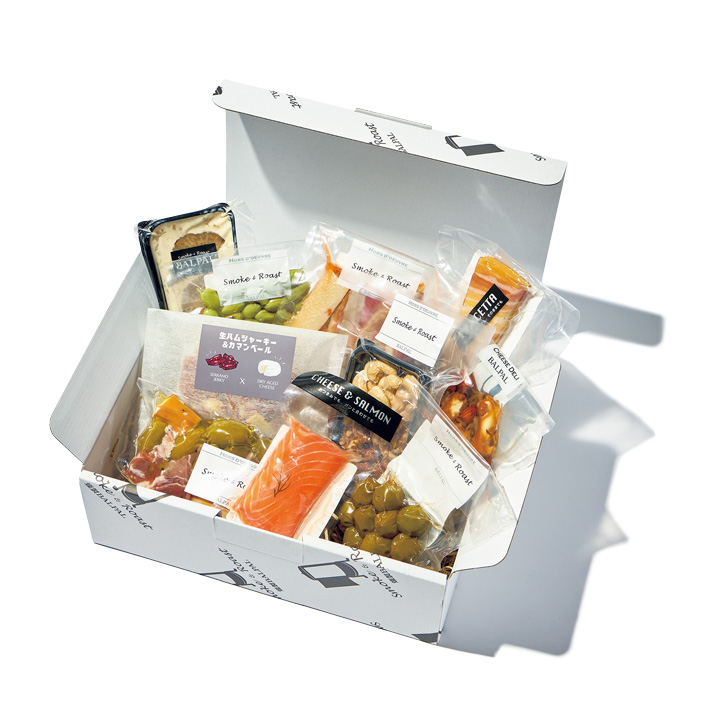 ビール好きによる、ビール好きのためのおつまみセット。燻製オリーブや枝豆、スモークナッツなどの軽いものから、チーズやスモークサーモンなど食べ応えのあるものまで、多彩なラインナップに思わずウキウキ。手土産にも使いやすいボックス入りなのも、嬉しいポイント。
