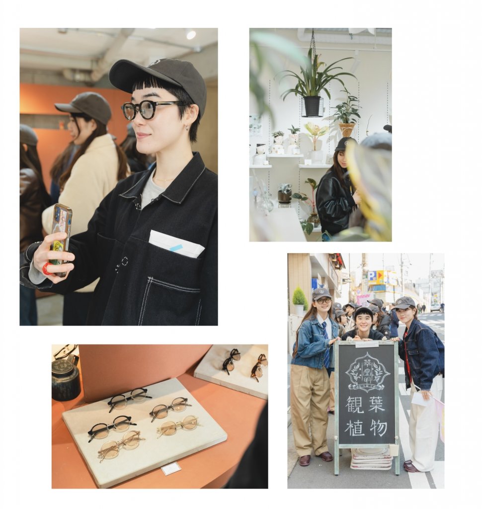まずは今回の拠点となる〈クラークス渋谷店〉に、ペーサーの桜子さんや初参加のhinaさん、FUDGE FRIENDのうさみさん、そして部員の皆さんが集合。この日のドレスコードは「デニム」です。パンツやジャケット、小物など、それぞれが思い思いのデニムコーデでやって来てくれました。桜子さん作の可愛らしいマップとお揃いでかぶるFUDGE RUN CLUBのキャップが配布されると、皆さんのテンションは一気にUP!今回は古着屋やカードショップ、眼鏡専門店など、渋谷や表参道近辺のナイスなスポットを巡りながら、ゆっくりとウォーキングを楽しみました。