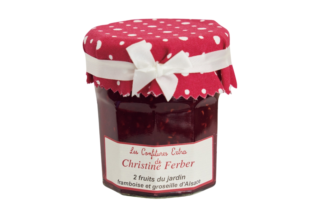 “コンフィチュールの妖精”と称される《クリスティーヌ・フェルベール》。職人が銅鍋で丁寧に煮込むコンフィチュールは、果実の繊維がわずかに残るハンドメイドならではの舌触り。フランボワーズとグロゼイユ(赤すぐり)の華やかな甘酸っぱさがやみつきに。[220g]10.80€