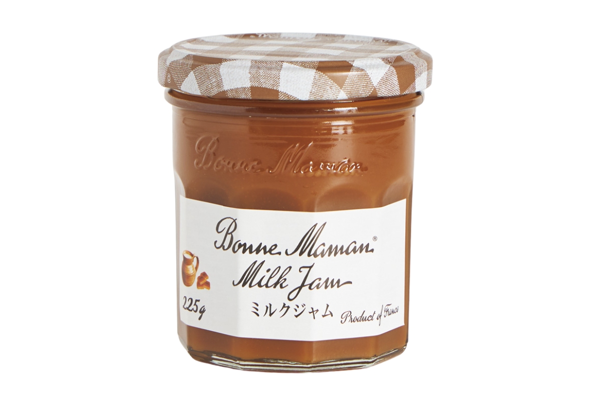 ギンガムチェックの蓋でお馴染みの《ボンヌママン》でも、ミルクジャムを発見。もったりとした濃厚なコクと甘みは、ひと口で頬張るだけで幸せ気分。ラテに加えて、キャラメルマキアート風に楽しむのもおすすめ。[225g]¥495(エスビー食品)